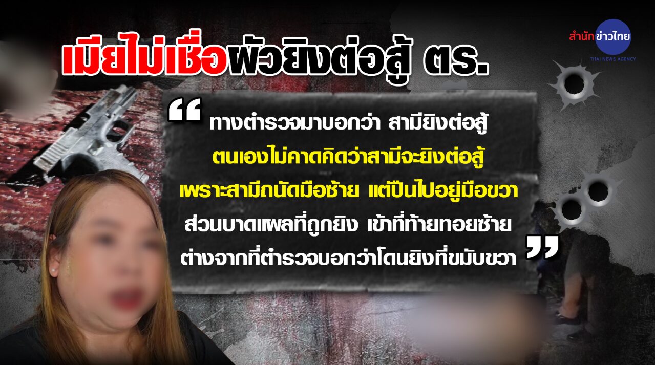 น.ส.กุลธิดา ภรรยาของนายต๋อง เล่าว่า เมื่อวานนี้ตนเองไปธุระที่ อ.ศรีเชียงใหม่ จ.หนองคาย จู่ๆ พี่ชายสามีโทรมาบอกว่า สามีถูกตำรวจวิสามัญเสียชีวิต จึงรีบกลับมาดูที่เกิดเหตุ พบสามีนอนเสียชีวิตอยู่ข้างรถจักรยานยนต์ และมีปืนตกอยู่ข้างๆ มือขวา ตอนนั้นยอมรับเลยว่ารู้สึกช็อกมาก ทำอะไรไม่ถูก ซึ่งทางตำรวจมาบอกว่า สามียิงต่อสู้ตำรวจจึงยิงตอบโต้ ซึ่งตนเองไม่คาดคิดว่าสามีจะยิงต่อสู้ เพราะปกติสามีไม่มีปืนและสามีถนัดมือซ้าย แต่ปืนไปอยู่มือขวา ส่วนบาดแผลที่ถูกยิง เข้าที่ท้ายทอยซ้าย ต่างจากที่ตำรวจบอกว่าโดนยิงที่ขมับขวา ส่วนปืนที่พบเชื่อว่าไม่ใช่ของสามีและยาบ้าที่พบกว่า 1,000 เม็ด ก็ไม่เชื่อว่าเป็นของสามี ยอมรับว่าสามีมีเสพบ้าง ซื้อมาครั้งละไม่มากไม่เกิน 10 เม็ดเพื่อมาแบ่งเพื่อนๆ และสามีเคยถูกตำรวจจับเรื่องยาบ้ามาหลายครั้งแล้ว ตนคิดว่าครั้งนี้ตำรวจทำเกินกว่าเหตุ .-สำนักข่าวไทย