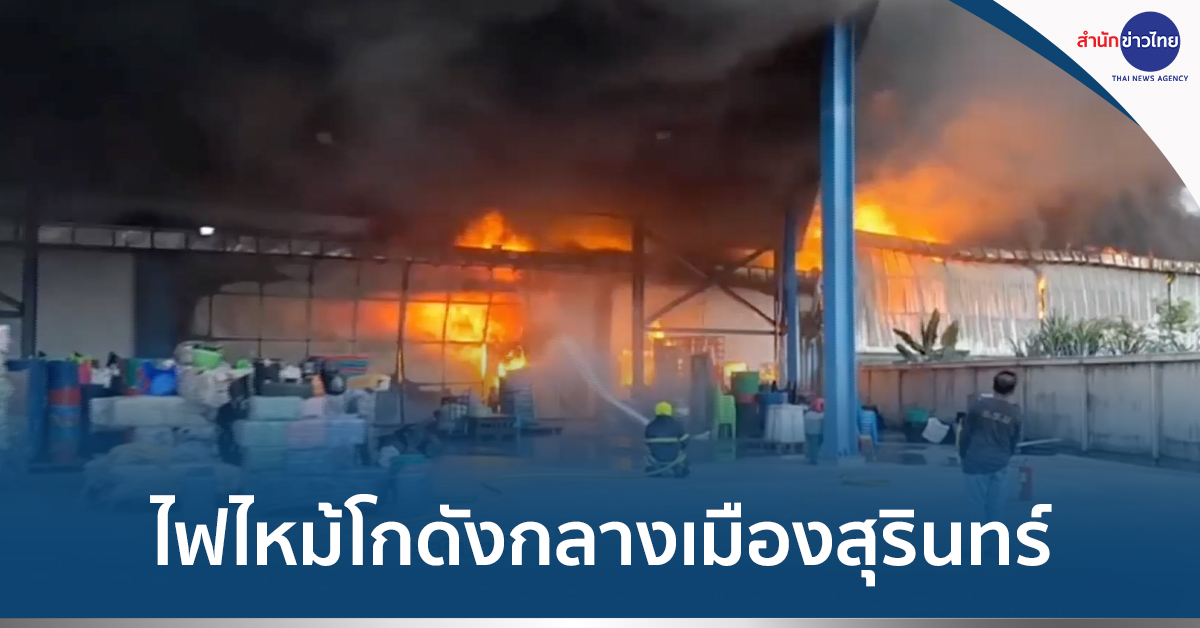 สุรินทร์ 16 มิ.ย.- ไฟไหม้โกดังเก็บสินค้า กลางเมืองสุรินทร์ พื้นที่ 3 ไร่ ลามติดบ้าน 2 หลัง ล่าสุดสามารถควบคุมเพลิงให้อยู่ในวงจำกัด