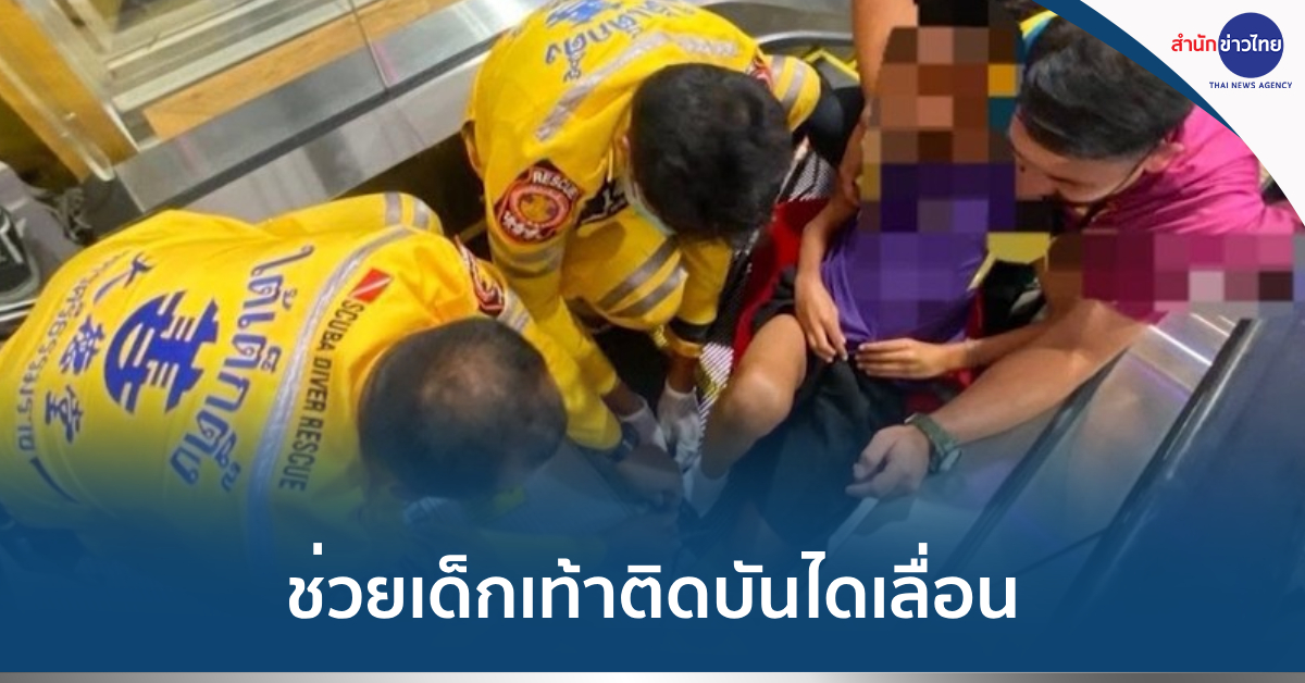 นครศรีธรรมราช 16 มิ.ย. – กู้ภัยเร่งใช้เครื่องตัดถ่างช่วยเหลือเด็กชายวัย 12 ปี ขึ้นบันไดเลื่อนห้างฯ ดังใน จ.นครศรีธรรมราช ถูกบันไดเลื่อนหนีบเท้ากระดูกนิ้วแตก