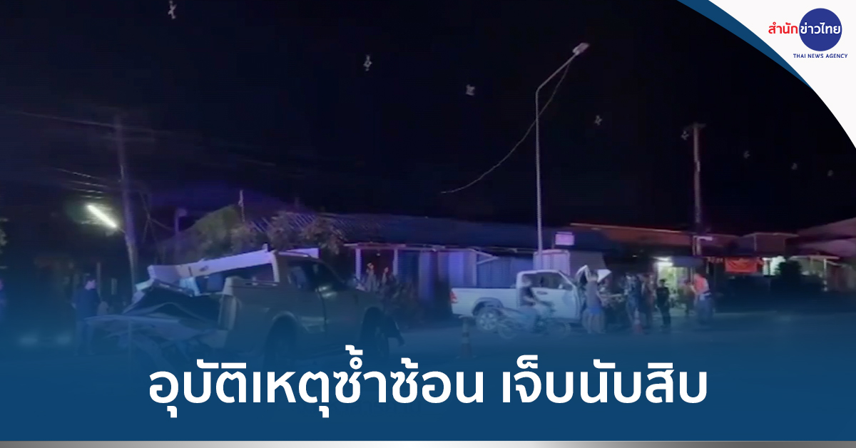 เกิดอุบัติเหตุซ้ำซ้อน เมื่อกระบะ 4 ประตู ถูกรถอีกคันพุ่งชนท้ายจนไถลไปเสยกับรถจักรยานยนต์และรถยนต์ที่ขับมา ได้รับความเสียหายทั้ง 4 คัน ส่งผลให้มีผู้ได้รับบาดเจ็บรวม 10 คน ในจำนวนนี้มีอาการสาหัส 2 คน