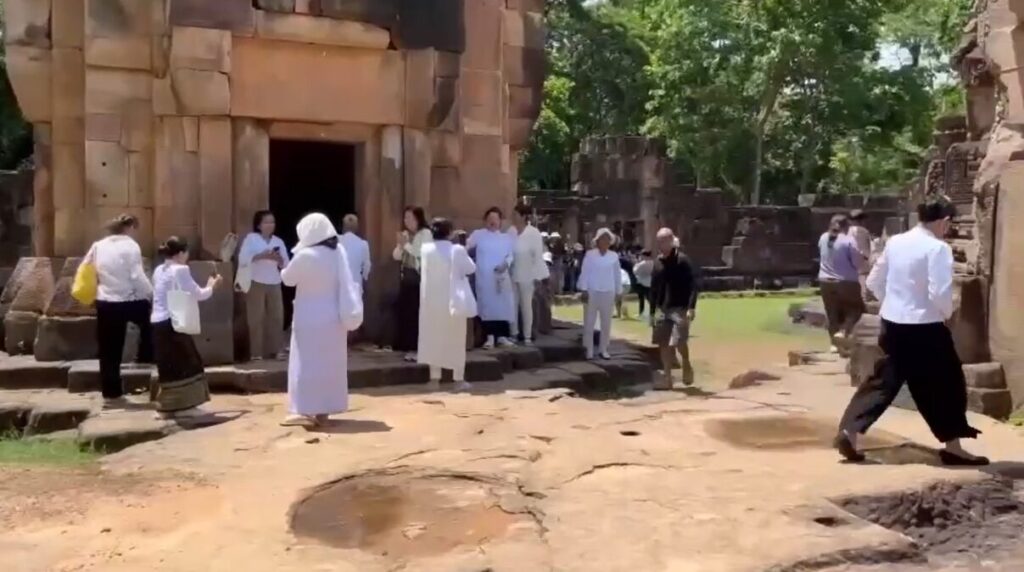สุรินทร์ 23 มิ.ย.-มาแบบไหนอีก ทหารกัมพูชาพาชาวบ้าน พระสงฆ์ แม่ชีนับพัน ขึ้นปราสาทตาเมือนธม พร้อมทำพิธีกราบไหว้