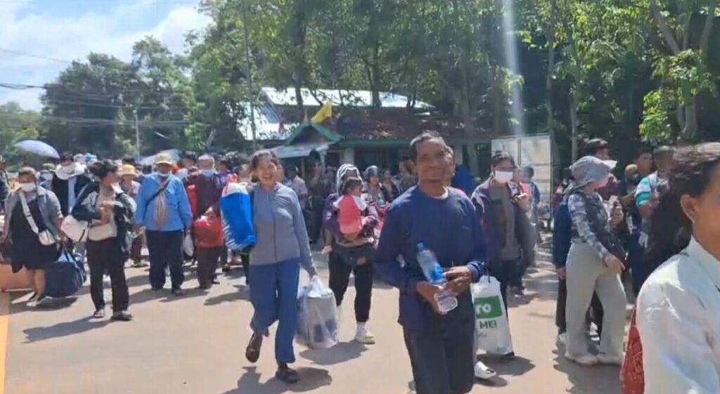 สุรินทร์ 25 มิ.ย.-ชาวกัมพูชากว่า 500 คน ส่วนมากเป็นแรงงานและผู้ป่วย แห่กลับประเทศผ่านด่านช่องจอม จ.สุรินทร์ หลังฝั่งกัมพูชาเปิดด่าน เวลา 10.00 น. โดยใช้เวลาเปิดเพียง 30 นาทีเท่านั้น