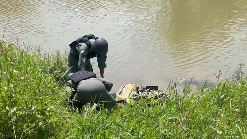 เจ้าหน้าที่ชุดเก็บกู้วัตถุระเบิด (EOD) จังหวัดพัทลุง ใช้ปืนแรงดันน้ำยิงใส่รถจักรยานยนต์ฮอนด้าเวฟสีขาว ทะเบียนเพชรบุรี เพื่อตรวจสอบวัตถุต้องสงสัย ภายหลังทีมประดาน้ำ พบรถคันดังกล่าวจมอยู่ในคลองชลประทานบ้านเกาะศพ หมู่ 3 ตำบลโคกทราย อำเภอป่าบอน จังหวัดพัทลุง ซึ่งเป็นรอยต่อกับอำเภอรัตภูมิ จังหวัดสงขลา แต่จากการตรวจสอบอย่างละเอียด ไม่พบระเบิดซุกซ่อนในรถจักรยานยนต์คันดังกล่าว พบเพียงเสื้อกันฝนและรองเท้าแตะ 1 คู่