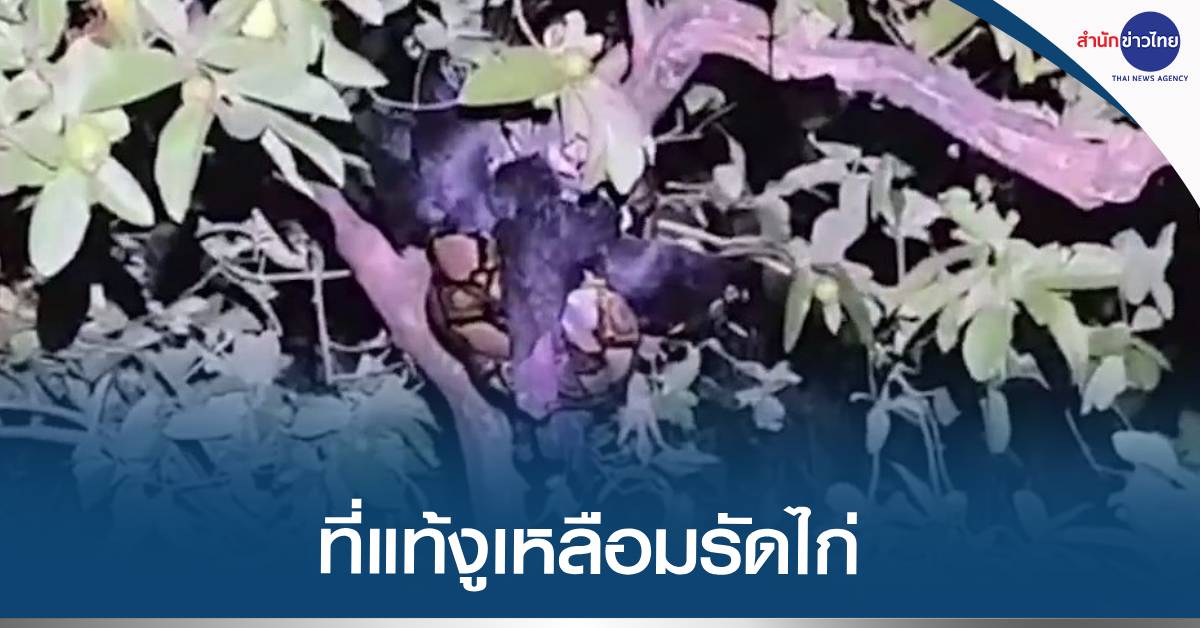 - นึกว่าผีหลอก ที่แท้งูเหลือมรัดไก่ห้อยหัวลงมาจากต้นไม้