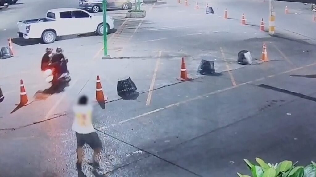 กล้องวงจรปิดบันทึกภาพ นายทีน อายุ 19 ปี ขี่รถจักรยานยนต์มากับนายไผ่ อายุ 19 ปี แล้วเกิดเสียหลักชนรถกระบะสีขาวที่จอดอยู่จนล้มลง ก่อนที่นายภู รุ่นพี่ของคู่อริวิ่งเข้ามาใช้ปืนขนาด .38 จ่อยิงนายไผ่ แต่ยิงไม่ออก ทำให้นายไผ่ยื้อแย่งจนปืนหล่น ระหว่างที่นายภูกำลังก้มหยิบปืน ด้านนายไผ่กับนายทีนจึงรีบวิ่งหนีไป จากนั้นก็มีกลุ่มเพื่อนของนายภูขี่รถจักรยานยนต์มาจอดข้างๆ และเช็กปืนกับนายภูว่า ทำไมถึงยิงไม่ออก เหตุเกิดเมื่อเวลา 01.50 น. วันที่ 8 มิ.ย. บริเวณลานจอดรถของตลาดแห่งหนึ่ง ต.เสาธงหิน อ.บางใหญ่ จ.นนทบุรี