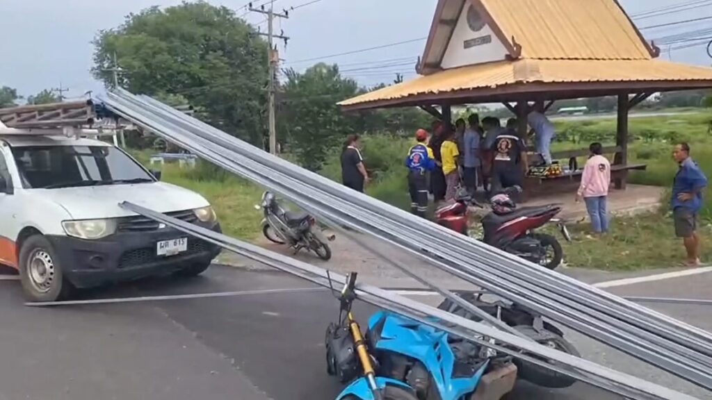 น.ส.วรรณา ผู้บาดเจ็บ เล่าว่า เมื่อวานนี้ (2 ก.ค.) เวลา 09.30 น. จะไปซื้อของที่ร้านสะดวกซื้อใกล้บ้าน ก่อนจะขี่รถจักรยานยนต์ออกมาจอดที่หน้าปากซอย รอให้รถหมดแล้วจะข้ามถนนไปยูเทิร์นข้ามไปอีกฝั่ง ขณะนั้นพบว่า มีรถกระบะจอดอยู่หน้าปากทาง จึงแซงขวาขึ้นมา ซึ่งจอดไม่ถึง 3 นาที ก็ถูกเหล็กพุ่งเข้ามาใส่ที่หน้าผาก จึงหันหลบเพราะกลัวจะเหล็กจะถูกดวงตา แต่เหล็กแทงเข้าที่ขมับด้านขวาเป็นแผลลึกอีกหนึ่งแผล ก่อนตั้งสติรีบออกจากรถจักรยานยนต์ ไปขอความช่วยเหลือกับคนขับรถกระบะที่จอดรอข้างกัน เพราะกลัวว่าคนขับรถขนเหล็กจะหลบหนี