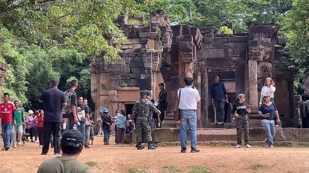 สุรินทร์ 18 ก.ค. – นักท่องเที่ยวสองประเทศยังหลั่งไหลไปเที่ยวชมปราสาทตาเมือนธม จ.สุรินทร์ รวมทั้งให้กำลังใจทหารแนวหน้าอย่างต่อเนื่อง ส่งผลเศรษฐกิจท้องถิ่นคึกคัก ขณะที่ตำรวจพร้อมดำเนินคดีหญิงกัมพูชาด่าทหารไทย ด้านนายอำเภอพนมดงรัก ตรวจสอบความคืบหน้าการก่อสร้างหลุมหลบภัย ยันพยายามจะทำให้เสร็จเร็วที่สุด