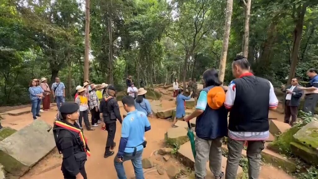 ส่วนเช้านี้ที่ปราสาทตาควาย อำเภอพนมดงรัก จังหวัดสุรินทร์ วันนี้ ตั้งแต่เปิดให้ขึ้นมาเที่ยวชมปราสาทมีนักท่องเที่ยวชาวไทยทยอยมาให้กำลังใจทหารพร้อมทั้งขึ้นเที่ยวชมปราสาท ส่วนทหารไทยและกัมพูชา ยังคงเข้มงวดป้องกันปัญหาความเข้าใจผิดต่างๆ โดยเฉพาะเรื่องตู้บริจาค ซึ่งมีการนำมาตั้งไว้ที่บริเวณจุดธูปเทียนไหว้สิ่งศักดิ์สิทธิ์ภายในตัวปราสาท พบว่า ยังคงตั้งอยู่ ซึ่งเจ้าหน้าที่ที่เกี่ยวข้องบอกว่ากำลังประสานกัมพูชาให้เอาออกไปไว้ในฝั่งของตัวเอง.-สำนักข่าวไทย