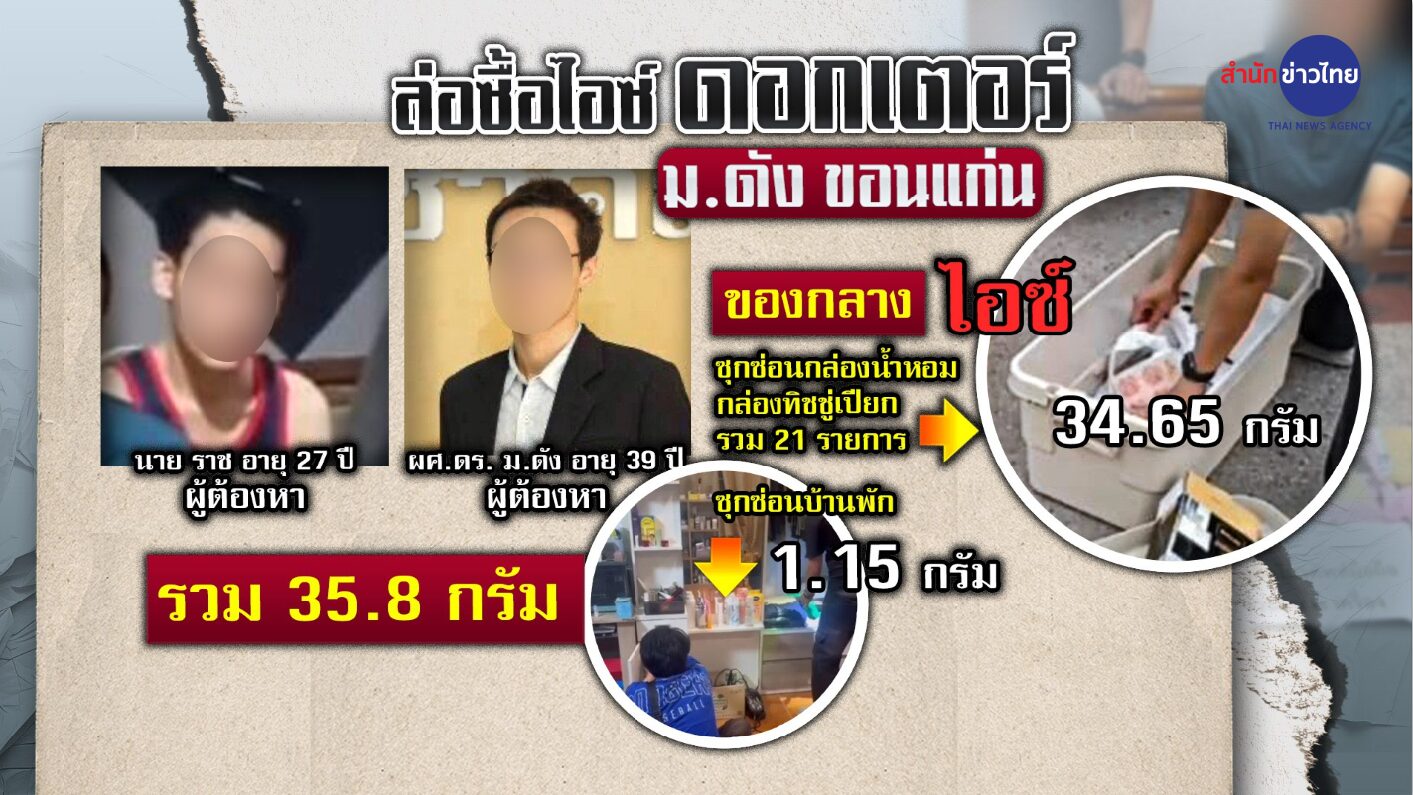 ตำรวจปราบปรามยาเสพติด เข้าตรวจค้นรถของอาจารย์มหาวิทยาลัยชื่อดังในขอนแก่น ที่มีดีกรีเป็นถึงผู้ช่วยศาสตราจารย์ดอกเตอร์ แต่กลับมีพฤติกรรมยุ่งเกี่ยวกับยาเสพติด โดยการค้นรถ แม้ตำรวจไม่พบยาเสพติด แต่เมื่อไปค้นห้องพักของนายราช คนรู้จักของ ผศ.ดร. ก็พบไอซ์ 34.65 กรัม ซุกซ่อนในกล่องน้ำหอมยี่ห้อต่างๆ รวมถึงกล่องทิชชู่เปียก รวม 21 รายการ ทำให้ในชั้นจับกุม ผศ.ดร. ให้การปฏิเสธว่า “ไอซ์” ที่ตำรวจไปเจอ “ไม่ใช่ของตัวเอง” แน่นอน