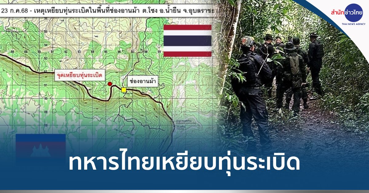 อุบลราชธานี 24 ก.ค. – บรรยากาศบริเวณช่องอานม้า อำเภอน้ำยืน จังหวัดอุบลราชธานี กลับมาตึงเครียดอีกครั้ง หลังช่วงค่ำเมื่อวานนี้ (23 ก.ค.) เกิดเหตุทหารไทยเหยียบทุ่นระเบิด ได้รับบาดเจ็บ 5 นาย มี 1 นาย บาดเจ็บสาหัสขาขาด.-สำนักข่าวไทย