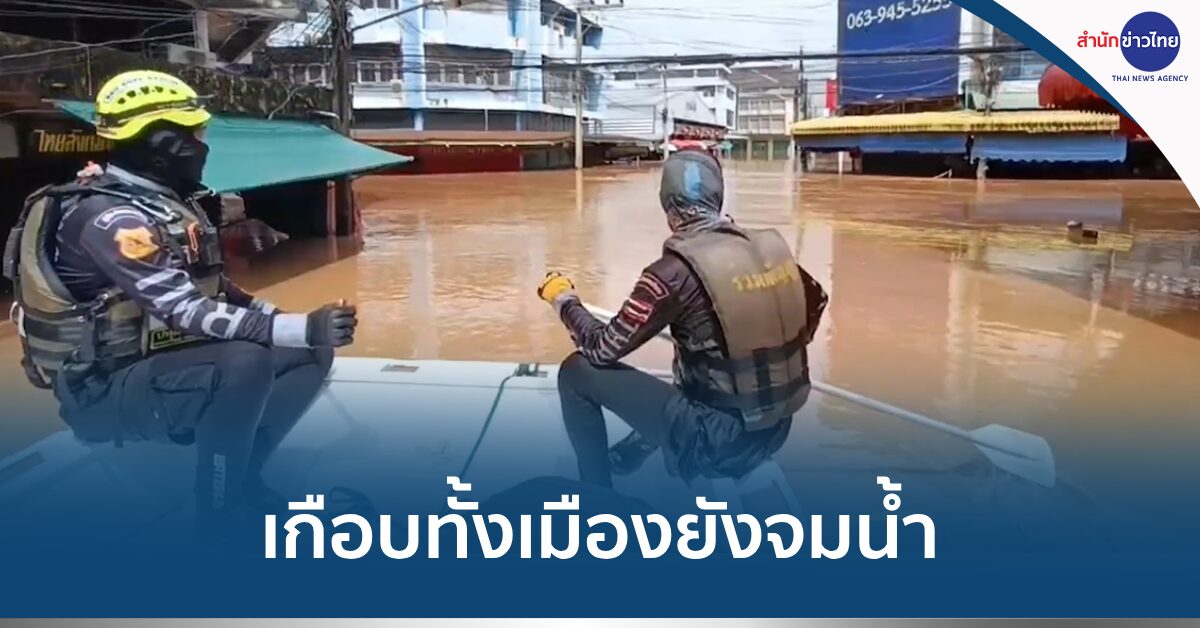 สถานการณ์น้ำท่วมเมืองน่านยังวิกฤติ แม้น้ำจะเริ่มลดลง แต่เป็นไปอย่างช้าๆ ทำใหบ้านเรือนอาคารร้านค้ายังจมน้ำ บางจุดยังสูงเกือบ 2 เมตร ถนนที่มุ่งหน้าเข้าเขตเศรษฐกิจตัวเมืองน่านยังมีน้ำท่วมสูงกว่า 1 เมตร ตลอดแนวถนนยาวหลายกิโลเมตร ต้องใช้เรือสัญจรเพียงอย่างเดียว