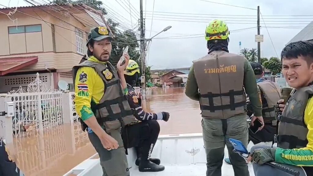 น่าน 25 ก.ค. – ชาวเมืองน่านที่เจอกับมหาอุทกภัยครั้งใหญ่สุดยังเดือดร้อนหนัก เพราะแม้น้ำจะเริ่มทรงตัวและลดลงช้าๆ แต่เกือบทั้งเมืองยังจมน้ำ บางจุดท่วมสูงเกือบ 2 เมตร เจ้าหน้าที่ยังต้องเข้าไปช่วยผู้ป่วยและผู้สูงอายุออกจากพื้นที่