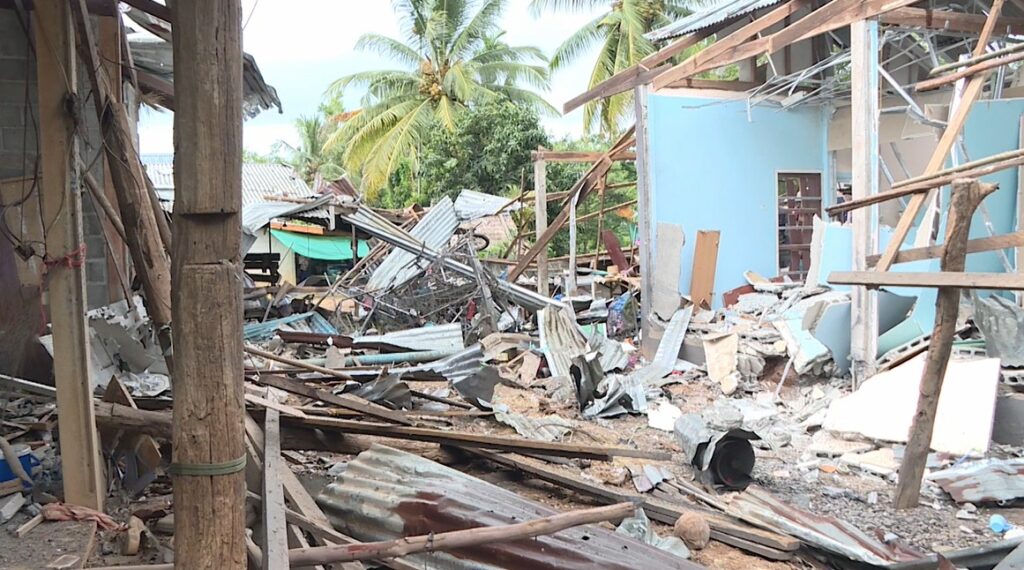 อุบลราชธานี 25 ก.ค. – สำรวจความเสียหาย อ.น้ำยืน จ.อุบลราชธานี หลังมีระเบิดตกลงมาในพื้นที่ พบบ้านเรือนเสียหาย 3 หลัง แต่ไม่มีใครได้รับอันตราย เนื่องจากประชาชนอพยพไปยังที่ปลอดภัยหมดแล้ว