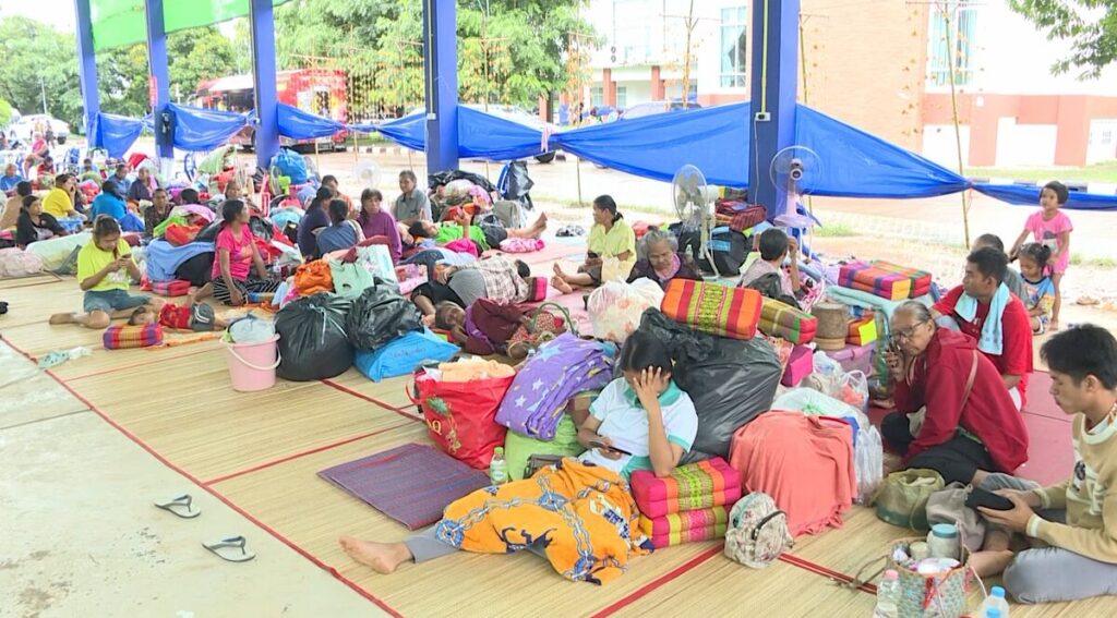ส่วนบรรยากาศในศูนย์อพยพใน จ.อุบลราชธานี เช้านี้มีฝนตกตลอดทั้งคืน สร้างความลำบากแก่ผู้อพยพ ต้องทนต่อสภาพอากาศที่ไม่เป็นใจ แต่ทุกคนเข้าใจสถานการณ์ และขอให้ยุติความรุนแรงเกิดขึ้นโดยเร็ว