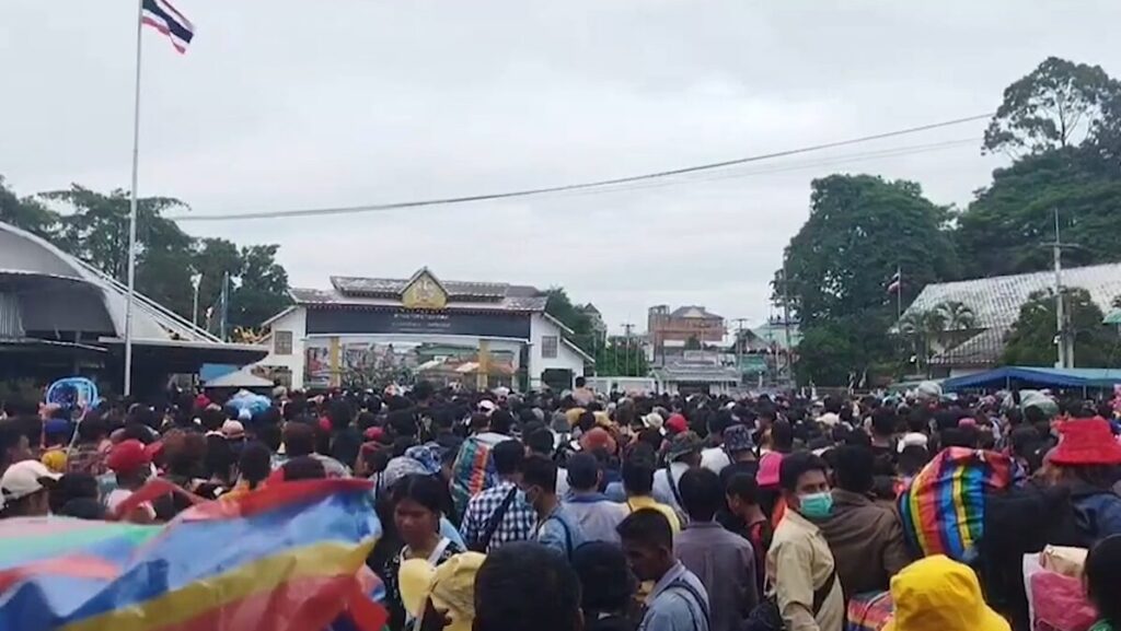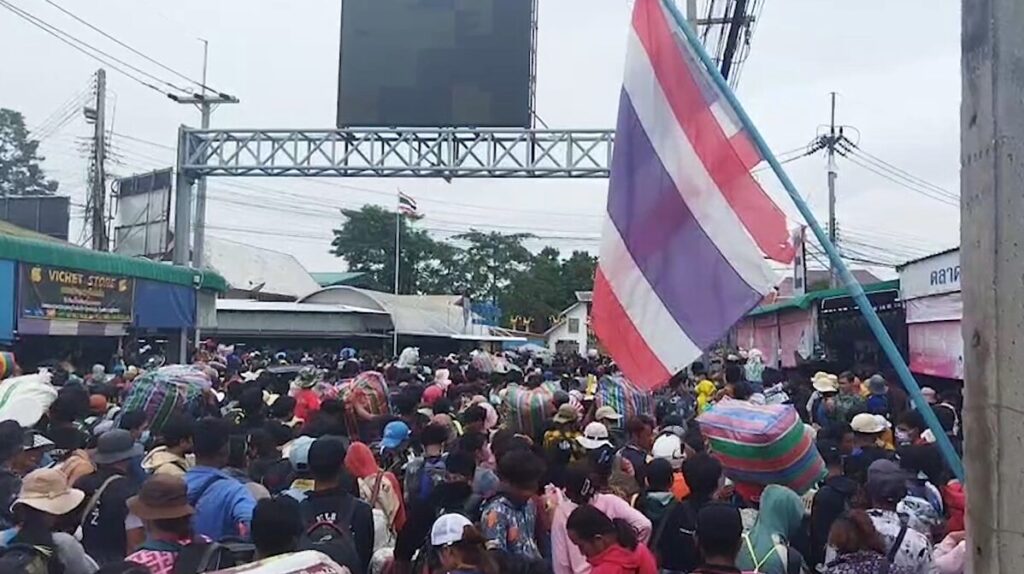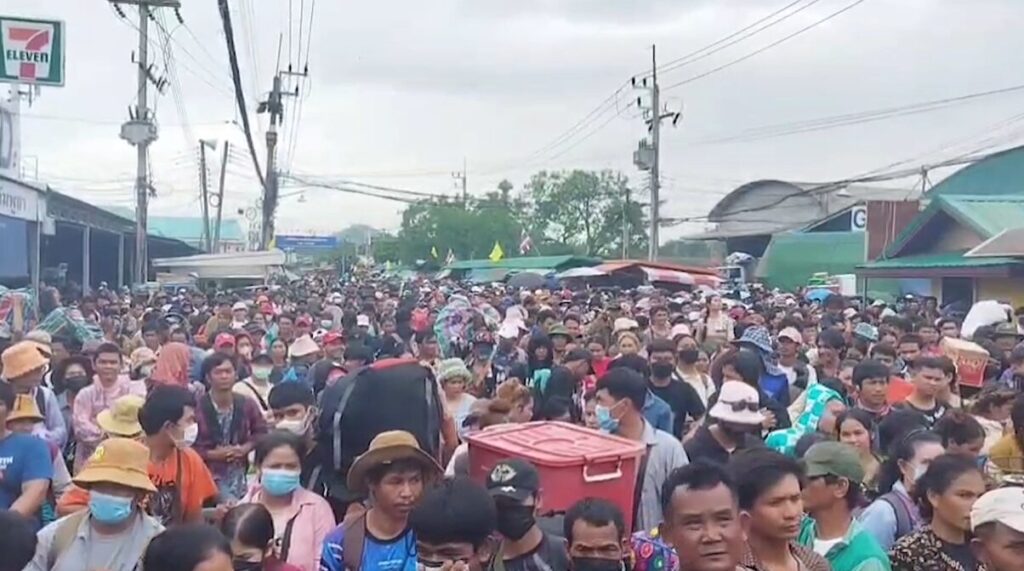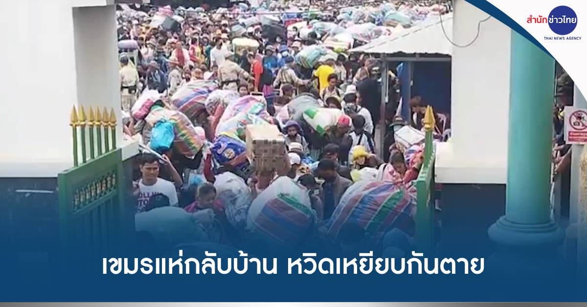 เวลา 08.30 น. วันที่ 27 ก.ค 68 บริเวณหน้าจุดผ่านแดนถาวรตลาดบ้านแหลม ตำบลเทพนิมิตร อำเภอโป่งน้ำร้อนจังหวัดจันทบุรี ก่อนถึงกำหนดเปิดประตูด่าน 09.00 น. มีชาวกัมพูชาหลายหมื่นคน แห่ขนสัมภาระรอข้ามกลับประเทศ มีบางคนหน้ามืดเป็นลม หวิดเหยียบกันตาย เจ้าหน้าที่ฝ่ายไทยจำเป็นต้องเปิดประตูใหญ่เร่งระบาย ก่อนปิดด่าน 15.00 น. – สำนักข่าวไทย