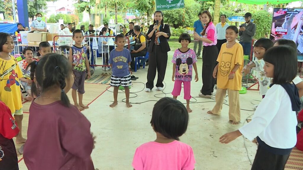จากนั้น ทีมข่าวเดินทางไปสังเกตการณ์ที่ศูนย์อพยพแห่งหนึ่งในจังหวัดอุบลราชธานี ซึ่งมีประชาชนอพยพมาเป็นจำนวนมาก รวมถึงเด็กๆ ที่ต้องขาดเรียนจากเหตุการณ์ความไม่สงบ ทางเจ้าหน้าที่ในศูนย์ที่รับผิดชอบด้านการศึกษา จึงจัดกิจกรรมนันทนาการให้เด็กๆ เช่น “ส่งแป้งหรรษา” กิจกรรมที่สร้างเสียงหัวเราะให้กับเด็กๆ และครอบครัวที่ได้เห็นลูกหลานกล้าแสดงออก