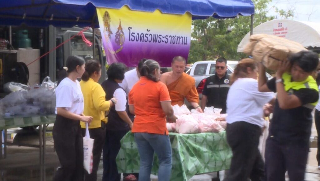 ส่วนบรรยากาศในตลาดสดแห่งหนึ่งในพื้นที่ปะทะ ยังมีกลุ่มพ่อค้าจิตอาสาช่วยกันจัดเตรียมอาหาร เพื่อนำอาหารไปแจกจ่ายแก่ผู้นำชุมชนรวมถึงเจ้าหน้าที่ โดยได้ตั้งโรงครัว ทำอาหารแจกเข้าสู่วันที่ 3 วัน ซึ่งพ่อครัวจิตอาสา ให้ข้อมูลว่า ตั้งแต่วันที่แรกที่เกิดการปะทะ กำลังจะเก็บของอพยพ แต่มีเจ้าหน้าที่และชาวบ้านบางส่วนที่ไม่ได้ออกจากพื้นที่ไม่มีอาหารรับประทาน จึงตัดสินใจอยู่ในพื้นที่เพื่อช่วยเหลือด้านเสบียง อีกทั้งมีเพื่อนๆ ที่ทราบข่าวได้ช่วยการสนับสนุนบริจาคทุนทรัพย์ในการทำอาหาร แจกจ่ายประชาชนในพื้นที่