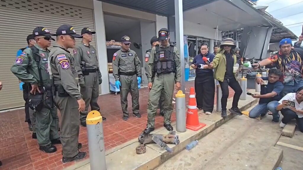 1 ส.ค. – เจ้าหน้าที่ EOD ลงพื้นที่ตรวจปั๊มน้ำมันบ้านผือ อ.กันทรลักษ์ จ.ศรีสะเกษ เบื้องต้นพบชิ้นส่วนหางของจรวด BM-21 ของกัมพูชา จึงทำการเก็บกู้