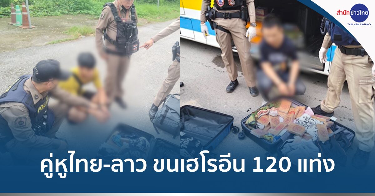 เชียงราย 2 ส.ค. – ตำรวจเชียงราย รวบคู่หูชาวไทย -ลาว ขนเฮโรอีน 120 แท่ง คารถโดยสาร มุ่งหน้ากรุงเทพฯ