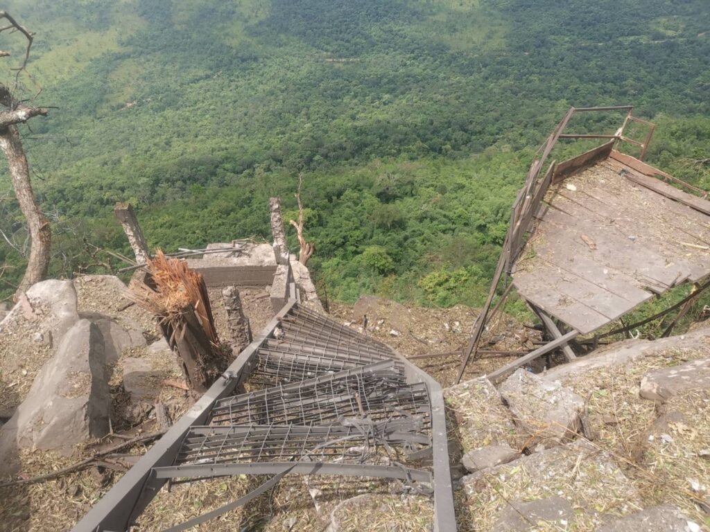 หลังทหารไทยเข้ายึดพื้นที่ภูมะเขือ ผลักดันทหารกัมพูชาอยู่บนจะงอยหน้าผาออกไปทั้งหมด พร้อมทำลายกระเช้า และฐานทหารกัมพูชาด้านล่างภูมะเขือ โดยการใช้โดรนติดระเบิด ล่าสุดมีการเผยแพร่ภาพทหารทำลายบันไดช่องคานม้า ในระหว่างยึดพื้นที่ได้จากการเหตุปะทะช่วง 5 วันที่ผ่านมา.-สำนักข่าวไทย