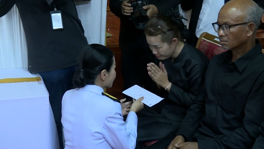 ก่อนหน้าพิธีพระราชทานเพลิงศพ รัฐมนตรีว่าการกระทรวงศึกษาธิการ ประธานในพิธี ได้มอบเงินช่วยเหลือเยียวยาให้แก่ครอบครัวผู้เสียชีวิต พร้อมกับพูดคุยและสวมกอดให้กำลังใจแก่ญาติผู้เสียชีวิต