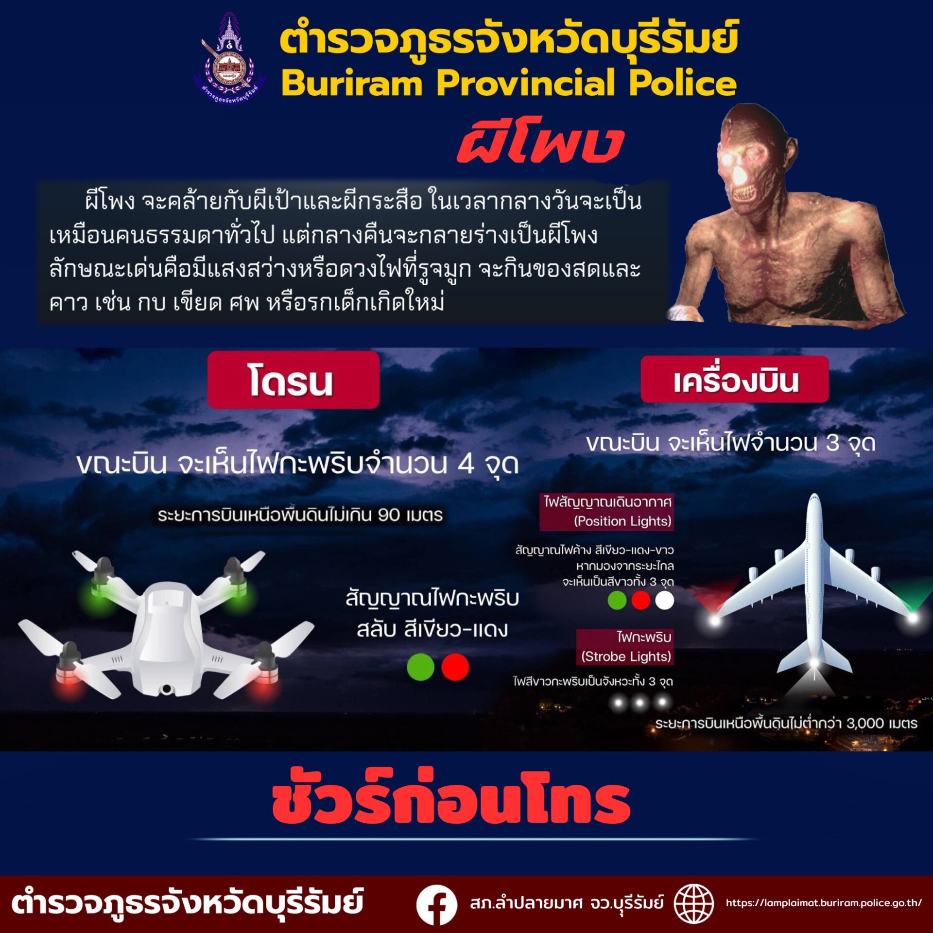 - สภ.ลำปลายมาศ แนะวิธีแยก “โดรน-เครื่องบิน-ผีโพง”