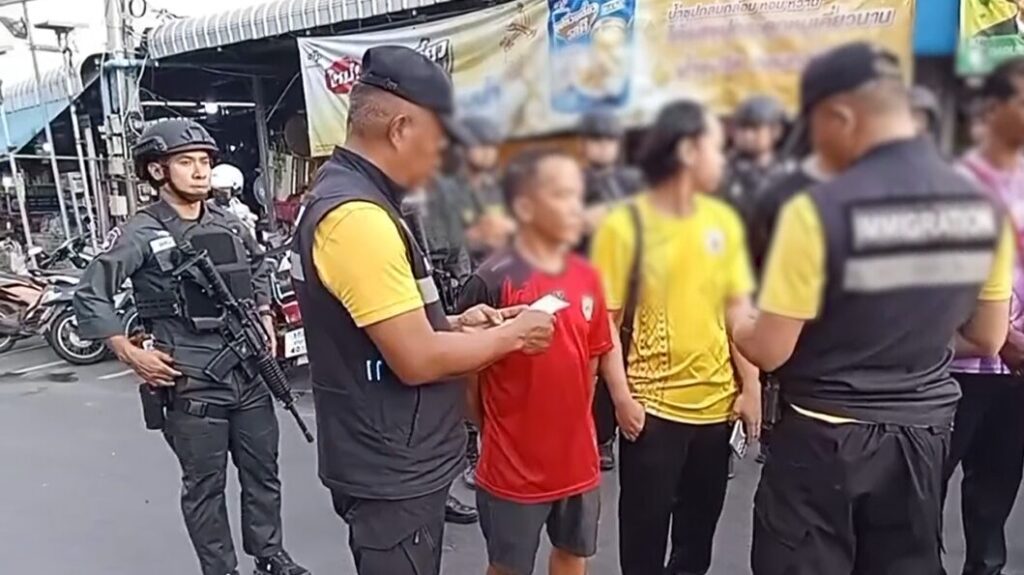 สุรินทร์ 6 ส.ค. – ตม. สนธิกำลัง ตชด. ปิดล้อมตรวจค้นตลาดสดกลางเมืองสุรินทร์ และพื้นที่โดยรอบ เพื่อค้นหาสายลับกัมพูชาที่อาจแฝงตัวอยู่ในพื้นที่ รวมถึงแรงงานผิดกฎหมาย