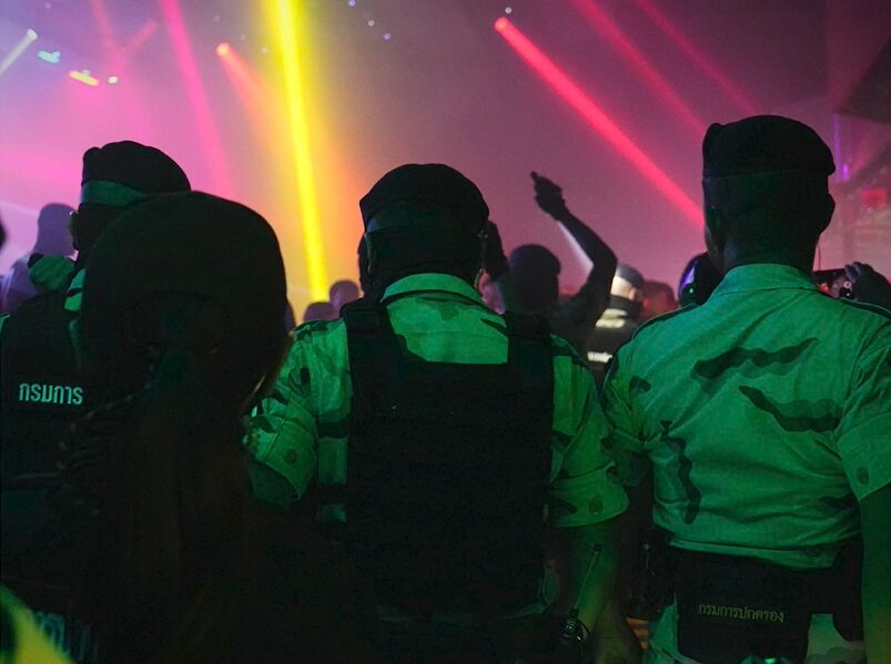 เมื่อเจ้าหน้าที่บุกเข้าถึงร้าน พบนักเที่ยวกว่า 380 คน กำลังดื่มกินและเต้นรำอย่างสนุกสนาน เจ้าหน้าที่จึงเข้าควบคุมสถานที่สั่งให้ปิดเพลงและเปิดไฟแสงสว่าง เกิดความโกลาหล นักเที่ยวหลายคนพยายามโยนยาเสพติดทิ้งและหลบหนีออกจากร้าน แต่เจ้าหน้าที่ได้ปิดล้อมประตูไว้ทุกด้าน จึงไม่มีใครสามารถหลบหนีไปได้