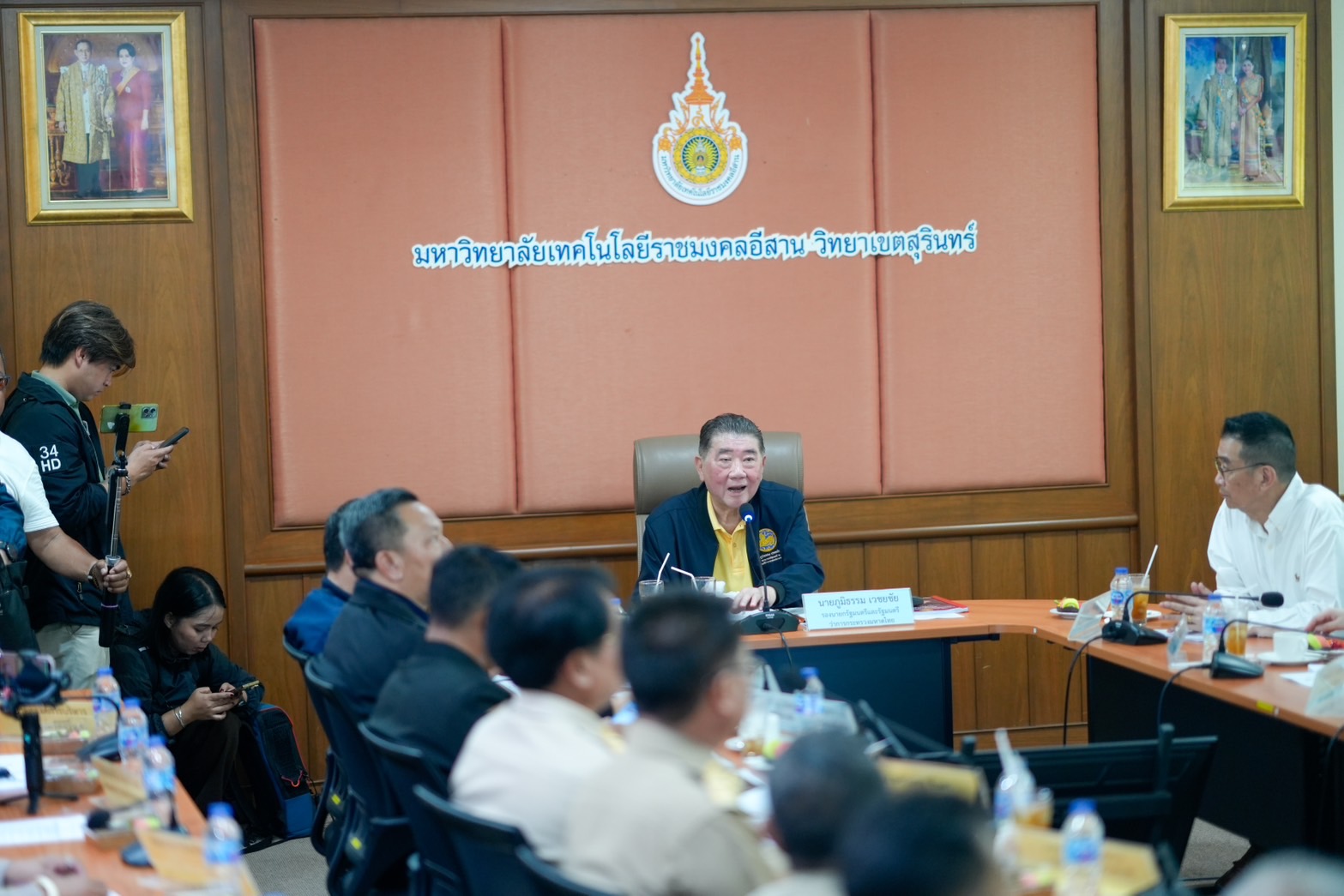 นายภูมิธรรม เวชยชัย รองนายกรัฐมนตรีและรัฐมนตรีว่าการกระทรวงมหาดไทย รักษาการนายกรัฐมนตรี พร้อมด้วย นายมาริษ เสงี่ยมพงษ์ รัฐมนตรีว่าการกระทรวงการต่างประเทศ น.ส.จิราพร สินธุไพร รัฐมนตรีประจำสำนักนายกรัฐมนตรี พร้อมคณะ ประชุมร่วมกับผู้ว่าราชการจังหวัด 4 จังหวัดชายแดนไทย-กัมพูชา ในการเดินทางลงพื้นที่ จ.สุรินทร์ เพื่อประเมินสถานการณ์ในพื้นที่ ก่อนให้ประชาชนเดินทางกลับเข้าบ้านเรือน