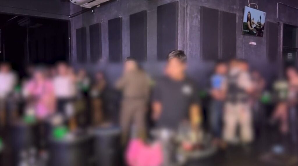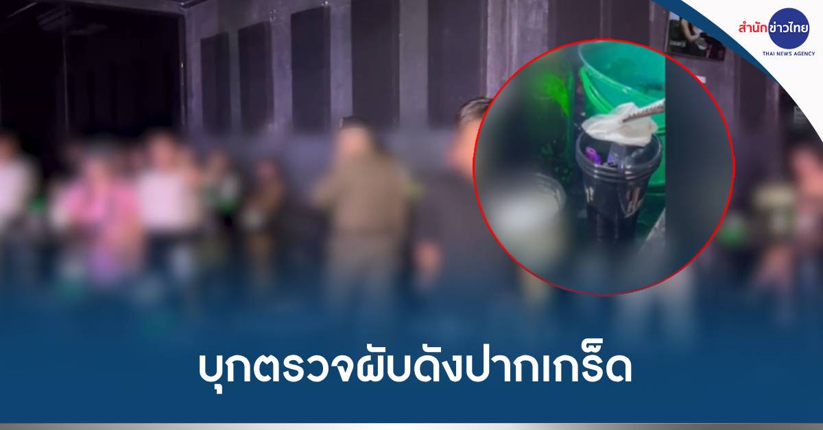 จากการตรวจสอบภายในร้าน พบยาเสพติดประเภทเคตามีนจำนวน 7 ห่อ ซุกซ่อนอยู่ในถังน้ำแข็งและถูกทิ้งลงพื้น พร้อมอุปกรณ์การเสพหลายรายการ เจ้าหน้าที่จึงเก็บไว้เป็นของกลาง ก่อนดำเนินการตรวจปัสสาวะผู้เข้าใช้บริการ พบผู้เสพปัสสาวะสีม่วงรวม 16 ราย แบ่งเป็นชาย 12 ราย และหญิง 4 ราย นอกจากนี้ยังพบอาวุธมีด 4-5 เล่มซุกซ่อนอยู่ภายในร้าน