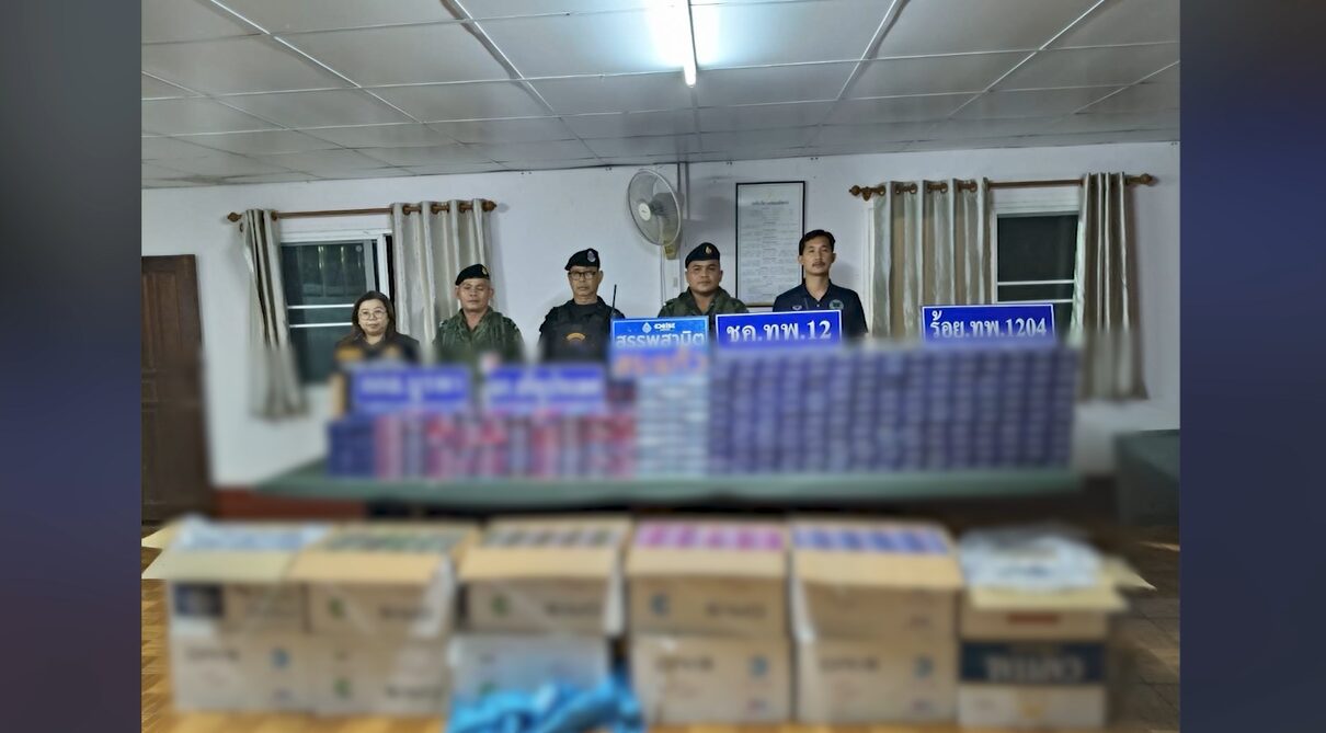 สระแก้ว 10 ส.ค.-กองกำลังบูรพา ยึดบุหรี่เถื่อนลอตใหญ่ รัฐสูญรายได้เกือบ 1 ล้านบาท โดนค่าปรับกว่า 12 ล้านบาท