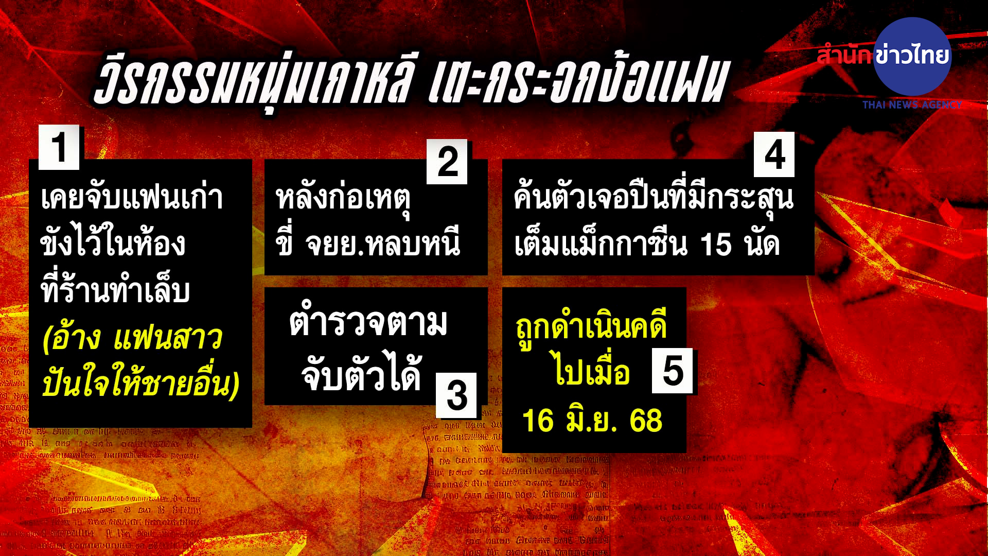 เมื่อตรวจสอบภายในห้องนอนอดีตแฟนสาวของผู้ก่อเหตุ ซึ่งอยู่ที่ชั้น 3 ของอาคารพาณิชย์ติดกับร้านนวดที่เกิดเหตุ พบว่าภายในห้อง มีข้าวของพังเสียหาย มีคราบเลือดตามพื้น ผู้ก่อเหตุนอนได้รับบาดเจ็บอยู่บนพื้น ส่วนอดีตแฟนสาวอยู่ในอาการหวาดกลัวนั่งหลบอยู่ด้านล่าง พร้อมตะโกนสั่งห้ามทุกคนบันทึกภาพ -สำนักข่าวไทย