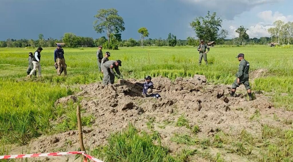 ขณะที่ จ.บุรีรัมย์ ตรวจพบปืนใหญ่และจรวด BM-21 ของฝ่ายกัมพูชาตกลงมาในพื้นที่ อ.บ้านกรวด ไม่ต่ำกว่า 221 ลูก และคาดว่าน่าจะมีจำนวนมากกว่านี้อีก เจ้าหน้าที่หน่วยปฏิบัติการทุ่นระเบิดด้านมนุษยธรรมที่ 3 ร่วมกับตำรวจ EOD ตำรวจภูธรจังหวัดบุรีรัมย์ จึงต้องลงพื้นที่ให้ความรู้แก่ชุดรักษาความปลอดภัยหมู่บ้าน และผู้นำชุมชนเกี่ยวกับอันตรายของทุ่นระเบิด และวัตถุระเบิดที่ยังไม่ระเบิด โดยห้ามไม่ให้ทำการหยิบจับหรือเคลื่อนย้าย และแนะนำให้ประชาชนสำรวจพื้นที่ หากมีจุดไหนผิดปกติไปจากเดิม หรือเห็นวัตถุระเบิด วัตถุต้องสงสัย ให้รีบแจ้งเจ้าหน้าที่.-สำนักข่าวไทย