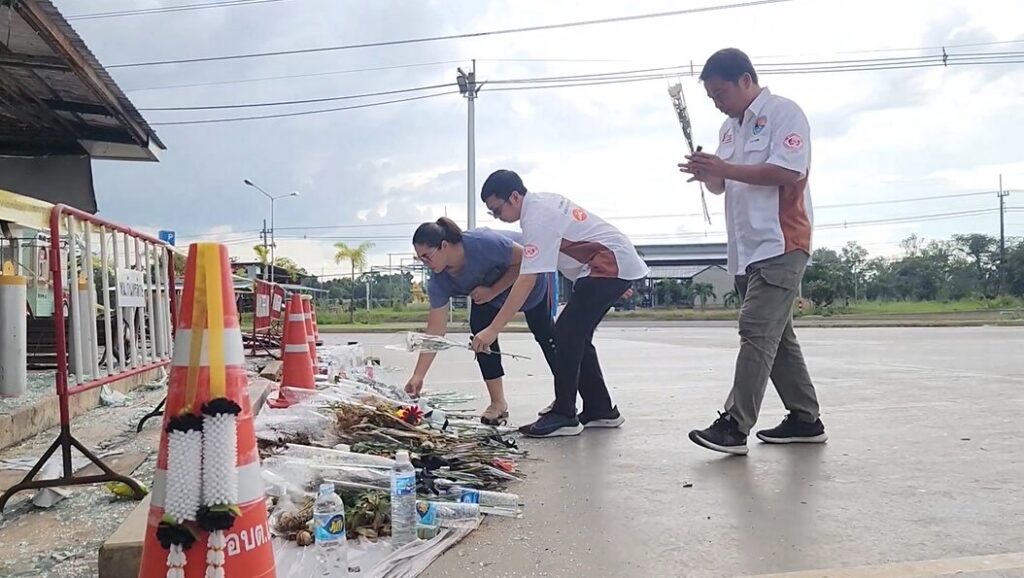 บรรยากาศปั๊มน้ำมันบ้านผือ ที่ลูกระเบิดตกใส่ร้านสะดวกซื้อ ยังคงมีประชาชนร่วมวางดอกไม้เพื่อไว้อาลัยให้กับผู้เสียชีวิต และวันนี้ผู้สื่อข่าวพบว่า มีร้านทำเล็บ ต่อขนตา ที่อยู่ห่างจากร้านสะดวกซื้อที่ระเบิดตกเพียง 20 เมตร กลับมาเปิดให้บริการแล้ว เจ้าของร้าน บอกว่า หลังเกิดเหตุ ต้องปิดร้าน ตนต้องขาดรายได้ เมื่อปั๊มเปิด จึงตัดสินใจกลับมาเปิดให้บริการเหมือนเดิม ซึ่งในช่วงนี้ทางเจ้าของปั๊มน้ำมัน ไม่คิดค่าเช่าเป็นระยะเวลา 3 เดือน หรือจนกว่าจะทำร้านเซเว่นเสร็จ.-สำนักข่าวไทย