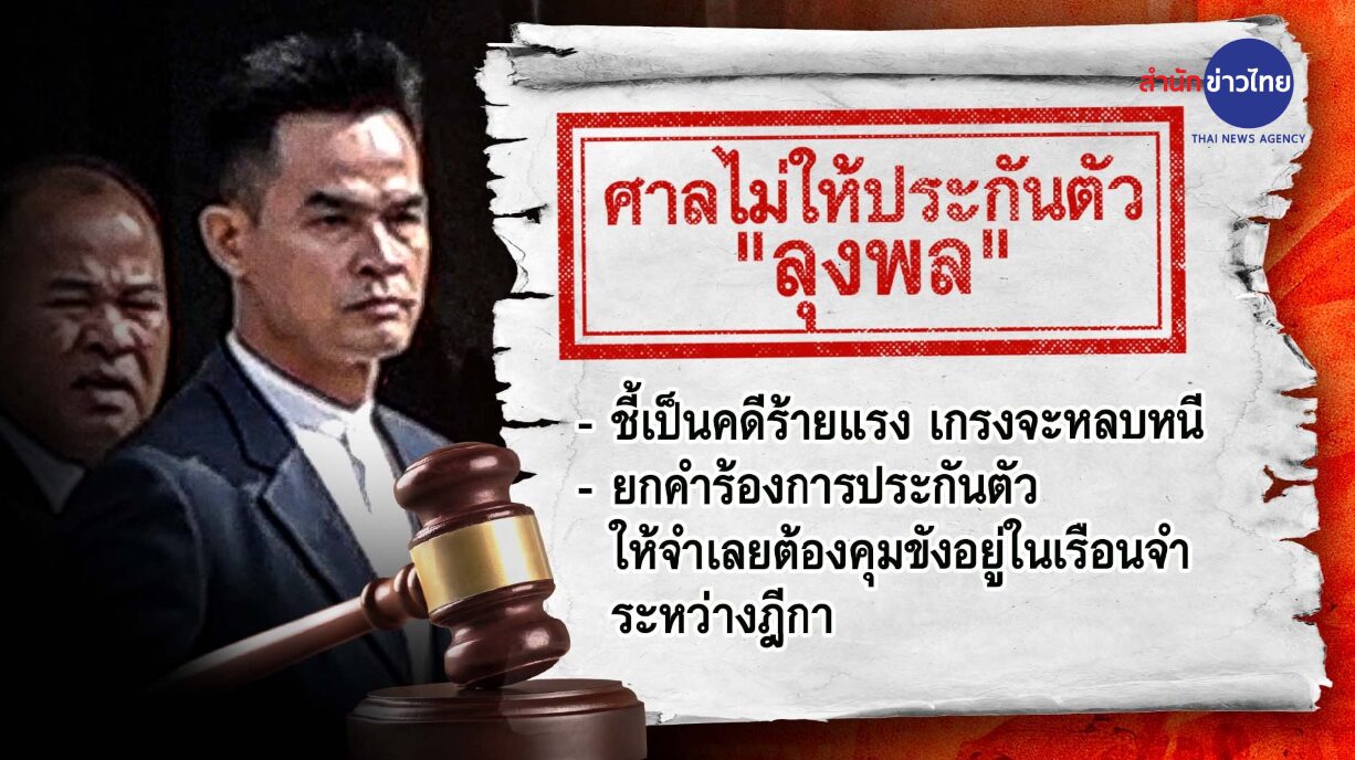 14 ส.ค. – ศาลฎีกายกคำร้อง ไม่อนุญาตให้ประกันตัว “ลุงพล” คดีน้องชมพู่ ชี้เป็นคดีร้ายแรง เกรงจะหลบหนี ส่งผลให้ลุงพลต้องนอนคุกระหว่างฎีกา
