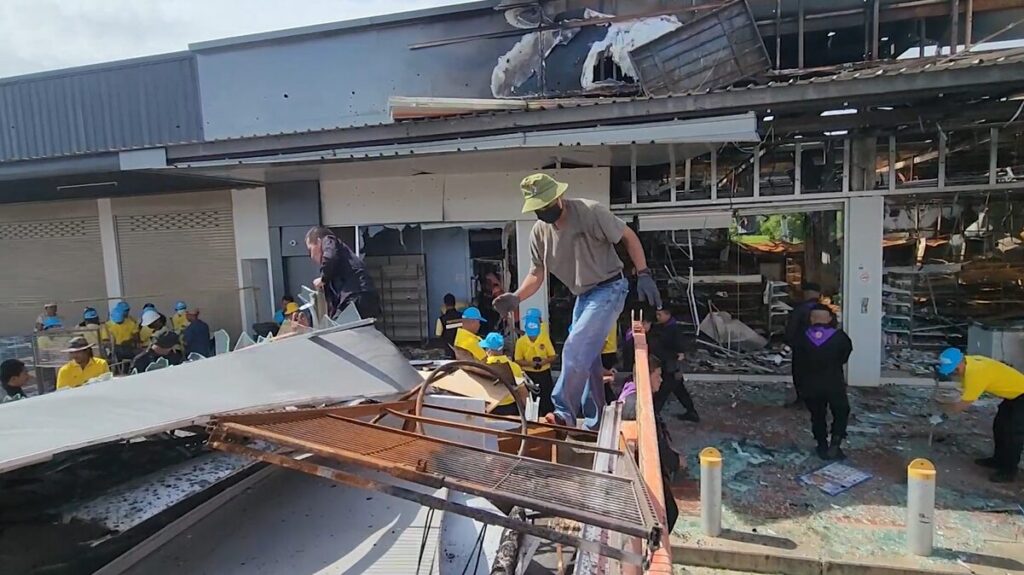 22 ส.ค. – เริ่มรื้อถอนร้านสะดวกซื้อในปั๊มน้ำมันบ้านผือ อ.กันทรลักษ์ ที่กัมพูชายิงจรวดตกใส่ ด้านเจ้าของปั๊มฝากถึงภาครัฐเรื่องความชัดเจนการช่วยเหลือ