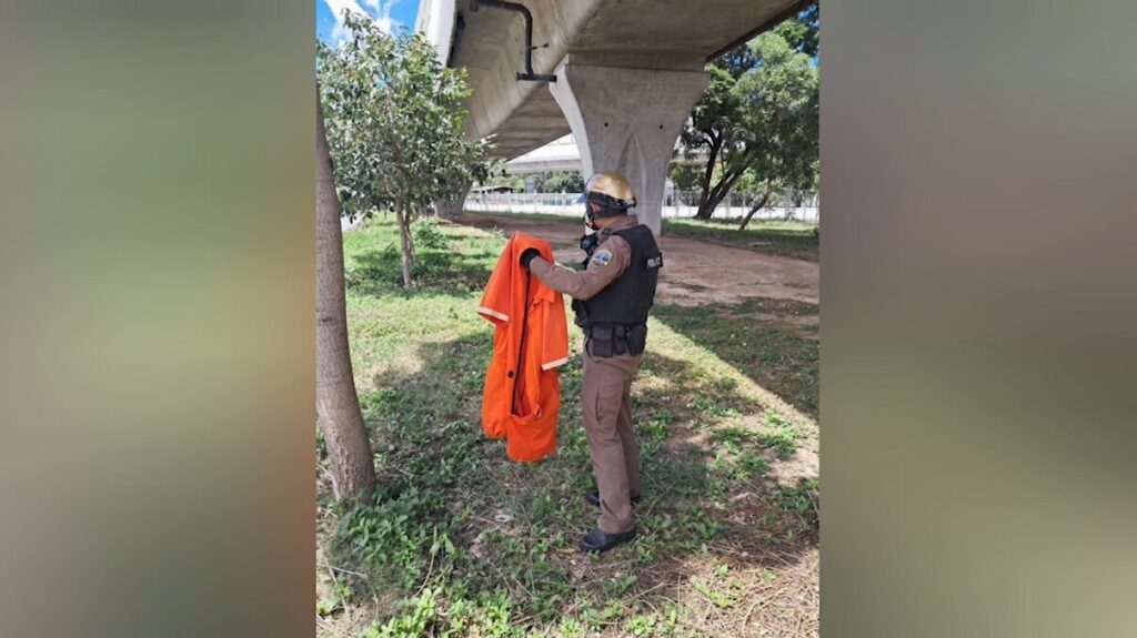 เจ้าหน้าที่ตรวจสอบ พบชุดที่นักโทษสวมใส่ถอดทิ้งไว้ใต้สะพานมหาเจษฎาบดินทรานุสรณ์ อยู่ระหว่างไล่ติดตาม