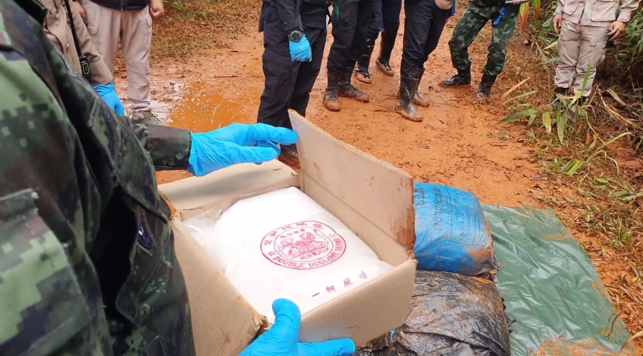 กองกำลังผาเมือง กรมทหารพรานที่ 31 เข้าตรวจสอบของกลางยาบ้าและเฮโรอีน หลังจากทหารสกัดการลำเลียงของกลุ่มขบวนการได้เมื่อเช้ามืดวันนี้ (27 ส.ค.) ขณะลาดตระเวนเส้นทางบ้านกิ่วสะไต-บ้านอาดี่ อ.แม่จัน จ.เชียงราย พบรถจักรยานยนต์ 3 คัน ขับขี่ตามกันมา พร้อมบรรทุกสัมภาระ เมื่อเจ้าหน้าที่แสดงตัวขอตรวจสอบ กลุ่มบุคคลดังกล่าวได้เร่งเครื่องหลบหนีไปทางบ้านอาดี่ ต.แม่ยาว อ.เมืองเชียงราย 1 คัน ส่วนอีก 2 คัน คนขับทิ้งรถและอาศัยความมืดหลบหนีไป โดยทิ้งยาบ้า 6 กระสอบ รวม 600,000 เม็ด และเฮโรอีน 20 ถุง ประมาณ 7 กิโลกรัม. – สำนักข่าวไทย