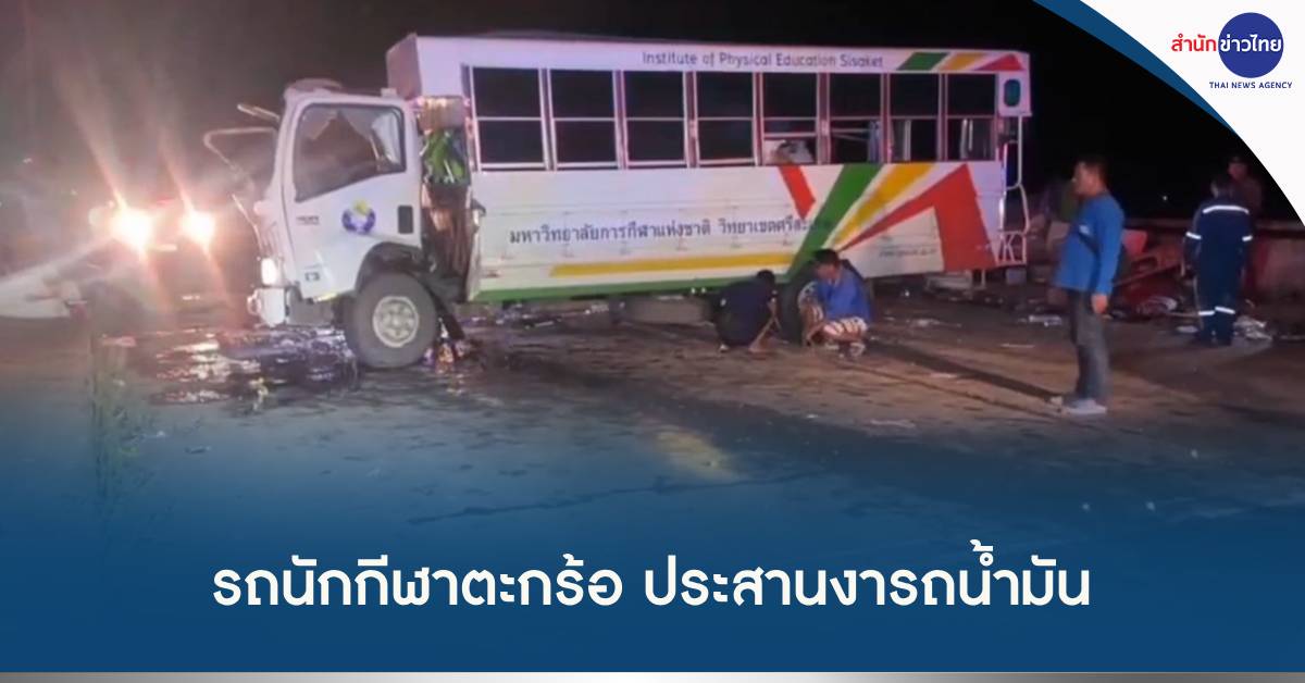 พิษณุโลก 30 ส.ค.-รถรับส่งนักกีฬาเซปักตะกร้อจากศรีสะเกษ พุ่งชนกับรถน้ำมัน บริเวณสี่แยกป่าสัก จ.พิษณุโลก มีผู้เสียชีวิต 2 ราย และบาดเจ็บหลายราย ขณะเดินทางไปแข่งขัน “พลศึกษาเกม ครั้งที่ 48” ที่สุโขทัย