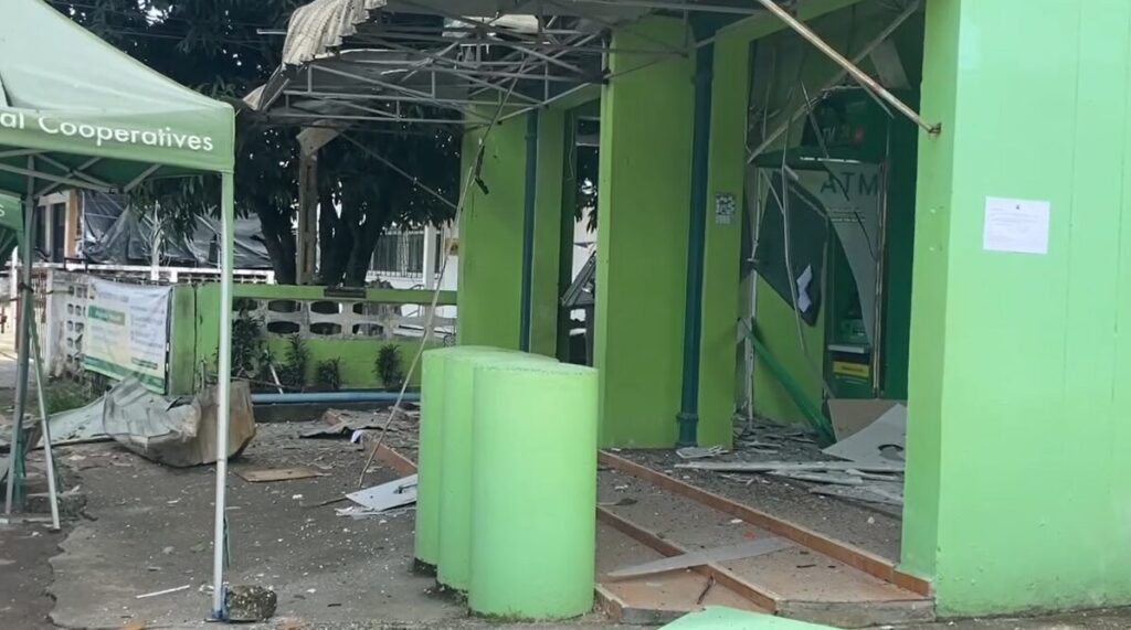 จุดที่ 5 เกิดขึ้นในพื้นที่ อ.ศรีสาคร เมื่อเวลา 00.30 น.ขอคืนวันที่ 1 ก.ย.68 โดยคนร้ายลอบวางระเบิดตู้ เอ..ที.เอ็ม. ธนาคาร ธกส. ซึ่งตั้งอยู่หน้า อบต.ตะมะยูง ม.3 ต.ตะมะยูง ทำให้ตู้ เอ.ที.เอ็ม. ได้รับความเสียหายแต่ไม่มีผู้ใดได้รับบาดเจ็บ