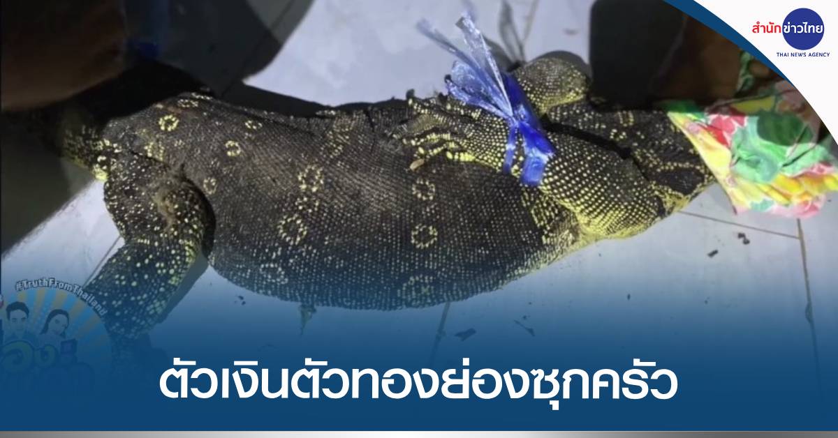 • นึกว่างู ที่แท้ตัวเงินตัวทองยาว 2 เมตร ย่องซุกครัว