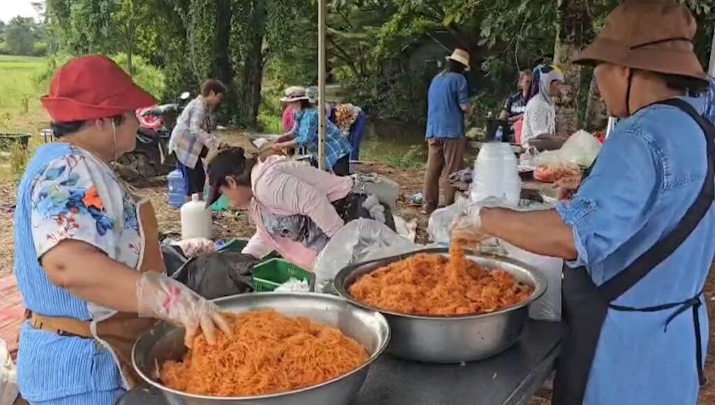 บ้านหนองจาน อ.โคกสูง จ.สระแก้ว บรรยากาศเป็นไปอย่างคึกคัก ประชาชนทั้งจากในพื้นที่และใกล้เคียงต่างพร้อมใจกันเดินทางมามอบสิ่งของและเลี้ยงอาหารทหารที่ปฏิบัติภารกิจตรึงกำลังแนวชายแดน ทำให้บริเวณถนนสายหลักของบ้านหนองจาน เต็มไปด้วยไก่ทอดกระทะใหญ่ ผัก ผลไม้ อาหารพื้นบ้าน