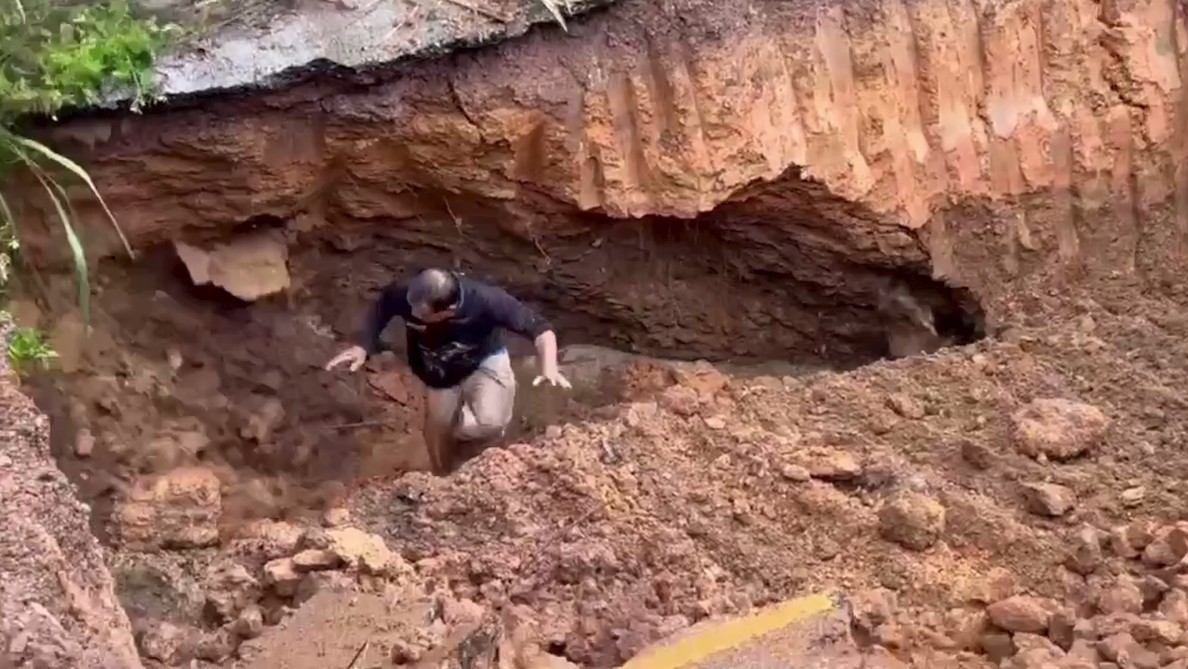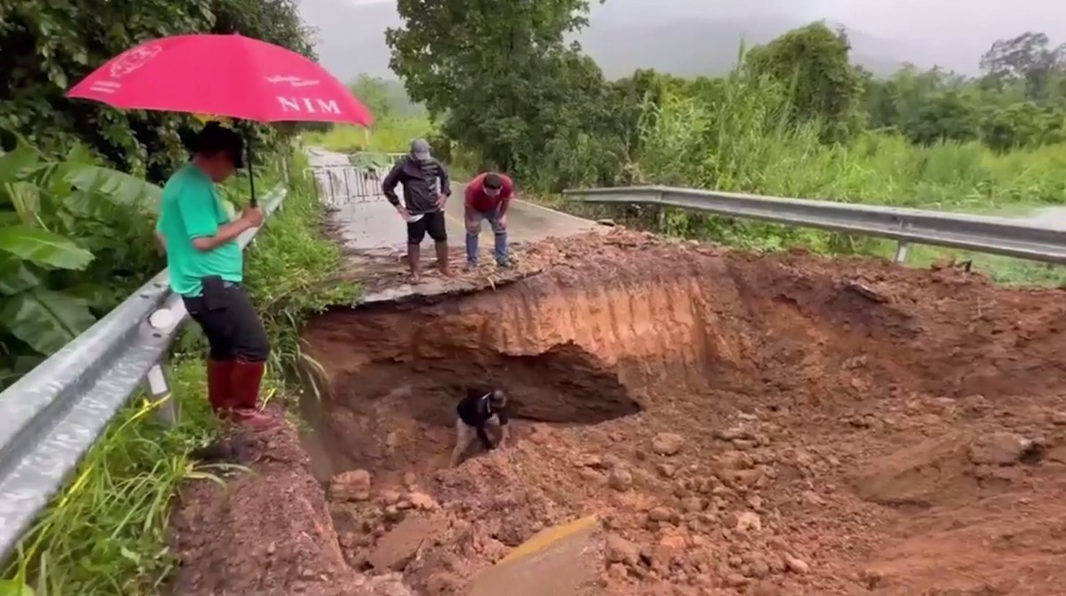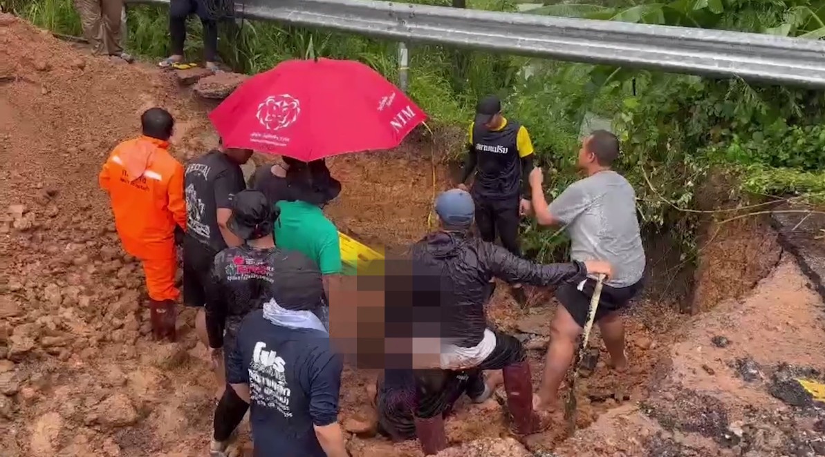 ผู้บาดเจ็บเป็นชายอายุประมาณ 50 ปี ลงไปตรวจสอบการขุดท่อระบายน้ำใต้ถนน เพื่อเร่งระบายน้ำออกจากพื้นที่ หลังปริมาณน้ำในห้วยตึงเฒ่ามีจำนวนมาก เสี่ยงท่วมพื้นที่ร้านค้าของประชาชน ระหว่างปฏิบัติงานเกิดเหตุดินและแผ่นปูนถนนถล่มทับร่างจนจมอยู่ใต้ดิน ก่อนที่รถแบ็กโฮจะพยายามตักดินและแผ่นปูนที่ทับศีรษะและแขนออก