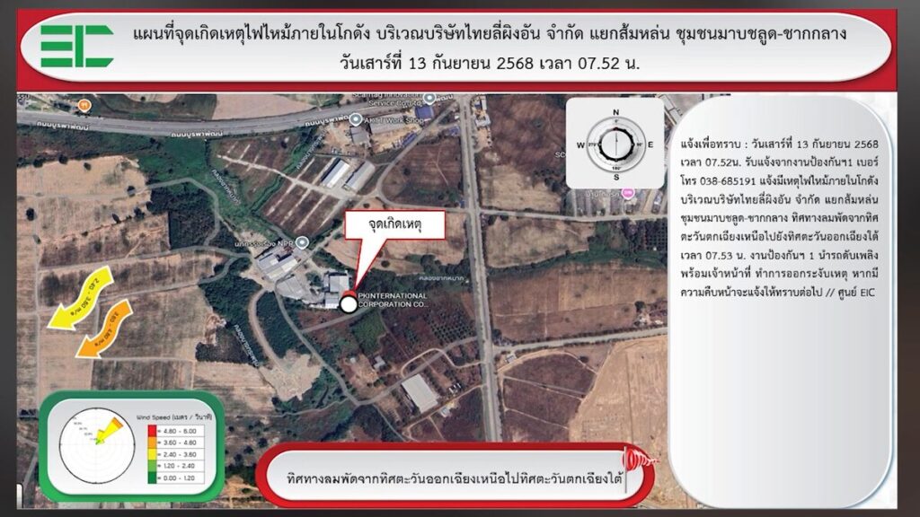เมื่อเวลา 7.30 น. เจ้าหน้าที่ตำรวจสภ.ห้วยโป่ง รับแจ้งมีเหตุเกิดเหตุเพลิงไหม้โรงงานพลาสติก ในนิคมเอเชีย แยกส้มหล่น ตำบลห้วยโป่งอำเภอเมืองระยอง กลุ่มควันได้พวยพุ่งขึ้นสูง จากนั้นมีเปลวไฟขึ้นตามมา และมีเสียงระเบิดตามมาเรื่อยๆกลุ่มควันได้เริ่มหนาขึ้น และลมได้พัดเข้าแหล่งชุมชน วัดชากลูกหญ้าและชุมชนห้วยโป่ง