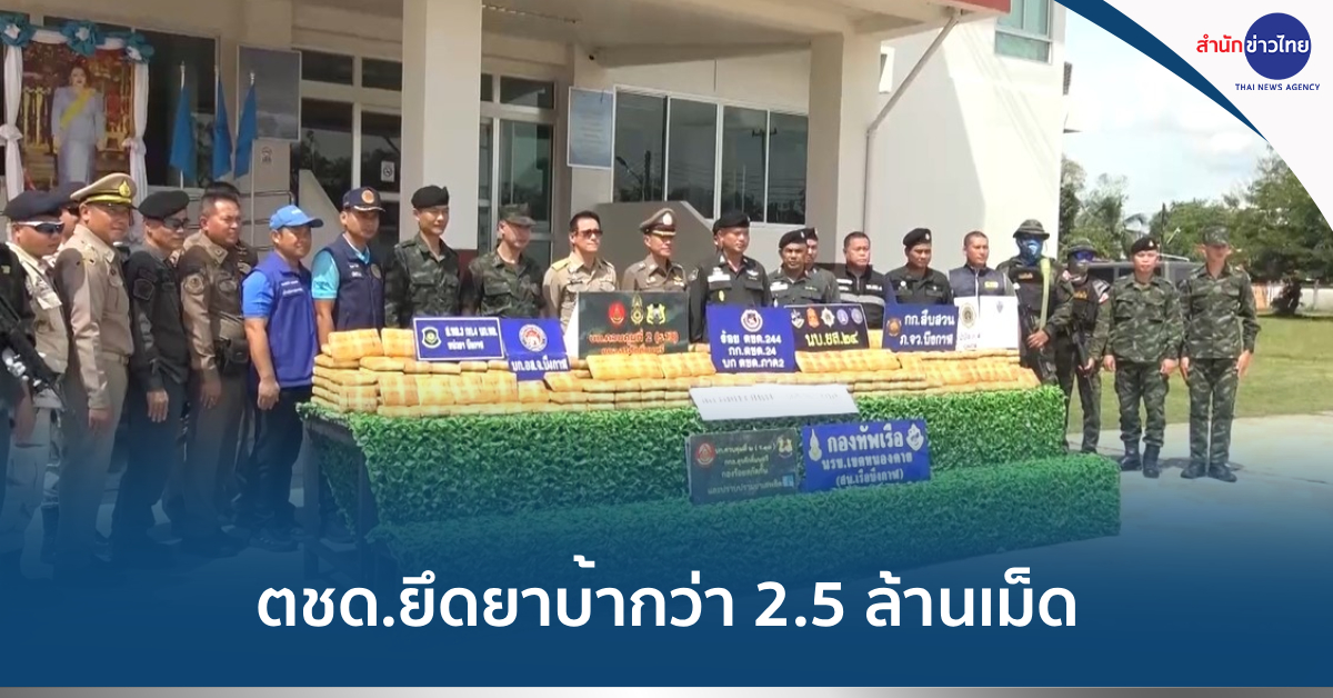 บึงกาฬ 14 ก.ย. – ตำรวจ ตชด. ยึดยาบ้า 7 กระสอบ กว่า 2.5 ล้านเม็ด เครือข่ายนางเวียง ขณะลอบขนเข้ามาในพื้นที่ จ.บึงกาฬ ปลายทาง จ.สระบุรี คาดเจอเจ้าหน้าที่ลาดตระเวนกดดันทำให้ต้องทิ้งยาบ้าไว้ริมถนน ก่อนหลบหนีไป