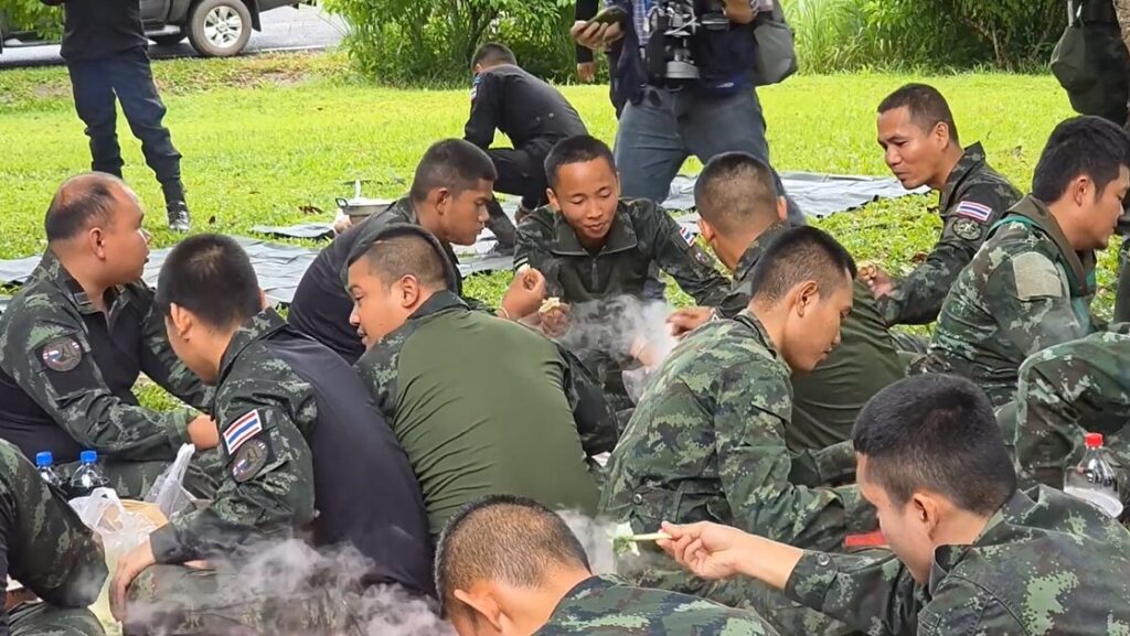 ทหารหลายนายบอกว่า ตอนนี้ยังกำลังใจดี พร้อมปฏิบัติหน้าที่ตลอด และอยากจะฝากบอกครอบครัวว่าไม่ต้องเป็นห่วง และอยากจะให้กำลังใจทหารที่อยู่ตลอดแนวชายแดนด้วยกัน ขอให้ปลอดภัย และพยายามหากิจกรรมทำจะได้ไม่เครียด พยายามพูดคุยกันเยอะๆ ให้กำลังใจซึ่งกันและกัน และขอบคุณผู้ใหญ่ใจดีที่เลี้ยงหมูกระทะ อยากให้มีเลี้ยงแบบนี้ทุกอาทิตย์