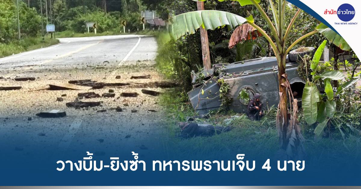 นราธิวาส 17 ก.ย.-คนร้ายลอบวางระเบิด-ยิงซ้ำ เจ้าหน้าที่ทหารพรานบาดเจ็บ 4 นาย ขณะลาดตระเวนเส้นทางในพื้นที่ อ.สุไหงปาดี จ.นราธิวาส