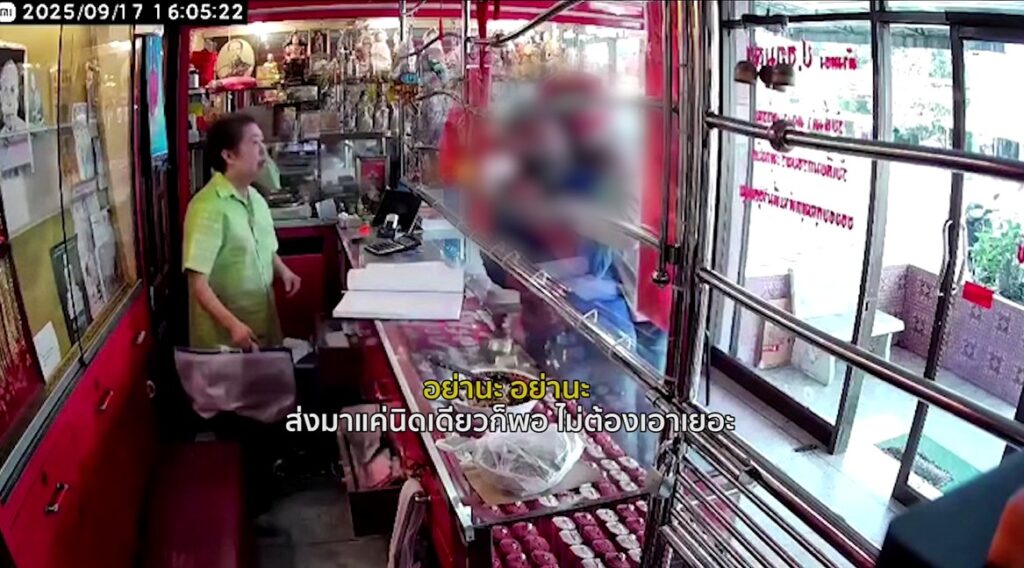 สระบุรี 18 ก.ย. – ตำรวจเร่งล่าตัวคนร้ายบุกเดี่ยวชิงทอง ใช้มีดจี้ลูกค้าเป็นตัวประกัน บังคับเจ้าของร้านหยิบทองใส่ถุงผ้า มูลค่ากว่า 2 แสนบาท ก่อนออกจากร้านซิ่งรถจักรยานยนต์หลบหนีไป