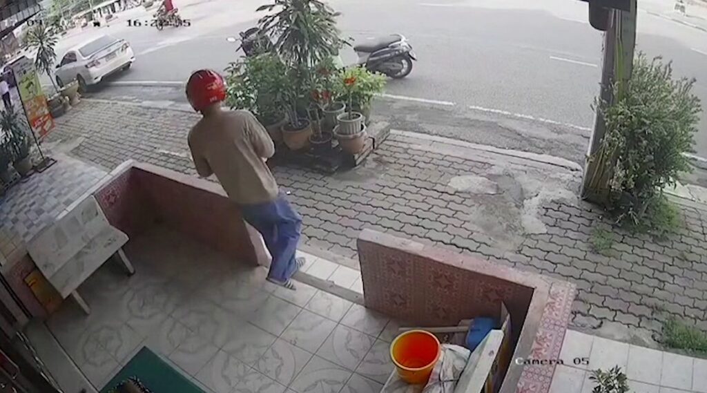 วงจรปิดร้านทองภายในตลาดใหม่ท่าลาน ริมถนนสายท่าลาน-ห้วยบง ต.บ้านครัว อ.บ้านหมอ จ.สระบุรี จับภาพคนร้ายเป็นชายสวมหมวกกันน็อกสีแดง สวมเสื้อคลุมแขนยาวสีครีม กางเกงยีน รองเท้าเตะ ใช้อาวุธมีดปลายแหลมจี้ลูกค้าในร้านเป็นตัวประกัน เพื่อบังคับให้เจ้าของร้านซึ่งเป็นหญิงสูงอายุ ส่งเงินและทองให้