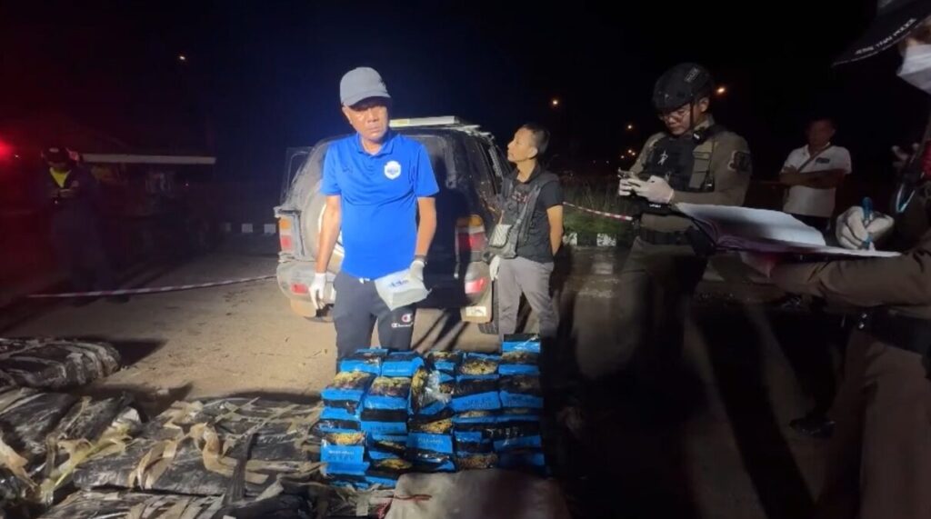 เบื้องต้น เจ้าหน้าที่จึงเข้าทำการตรวจค้นภายในรถ ที่เบาะนั่งด้านหลัง ถึงกับอึ้ง เพราะพบกระสอบ 9 ใบ อัดแน่นอยู่ด้านหลัง ตรวจสอบภายในกระสอบ มีห่อพลาสติกใสและถุงสีฟ้าลายเสือดาวรวม 448 ห่อ น้ำหนักกว่า 448 กิโลกรัม ภายในห่อมีผลึกขาวใส ลักษณะผลึกคล้าย ไอซ์ นอกจากนี้ ยังพบบัตรประชาชน นายสุทธิโชค อายุ 17 ปี ชาว อ.โพนพิสัย จ.หนองคาย ตรวจสอบพบ มีประวัติคดียาเสพติด 3 คดี ส่วนทะเบียนรถ มีชื่อนายกันตพงษ์ อายุ 20 ปี ชาวตำบลเดียวกัน เป็นคนครอบครอง และมีประวัติในคดียาเสพติดแล้วถึง 4 คดี สอบพยานที่เห็นเหตุการณ์ ให้ข้อมูลว่า เห็นคนขับและเพื่อนที่นั่งมาในรถ รวม 2 คน วิ่งหนีออกจากรถ โดยมีรถอีกคันมารับ และขับออกไปอย่างรวดเร็ว ซึ่งเจ้าหน้าที่ อยู่ระหว่างการเร่งขยายผล